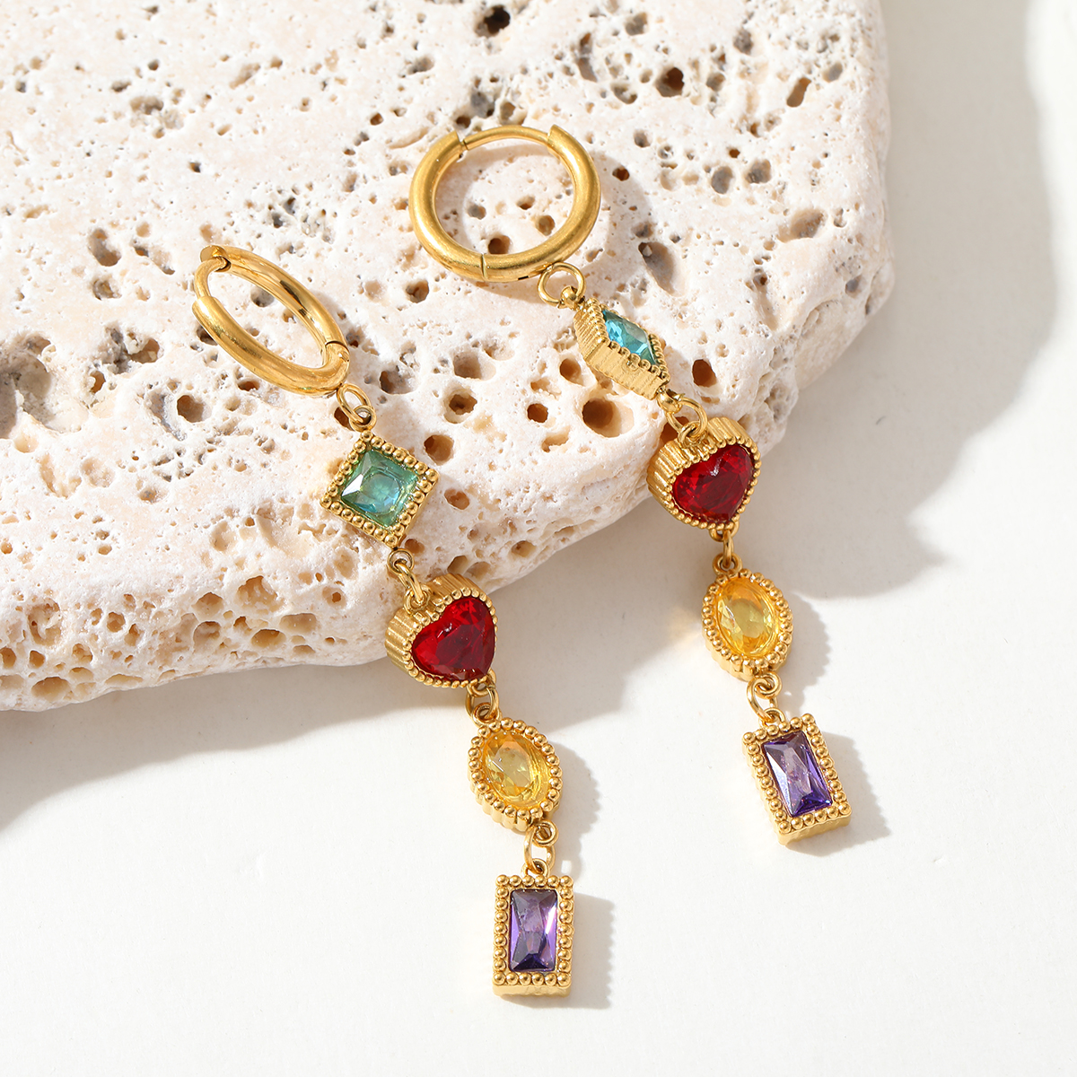 Γυναικεία σκουλαρίκια Iris από ανοξείδωτο ατσάλι επιχρυσωμένα 18Κ με Zircon. Κομψά κρεμαστά σκουλαρίκια με πολύχρωμα zircon.