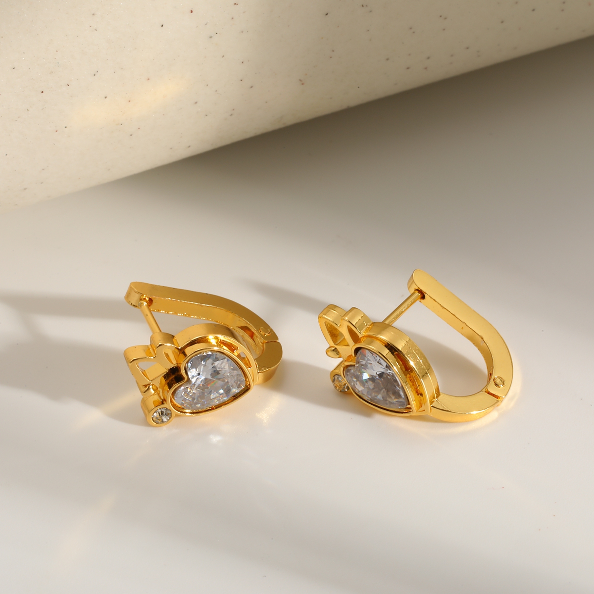 Γυναικεία σκουλαρίκια κρίκοι Diamond Heart Hoops από ανοξείδωτο ατσάλι επιχρυσωμένα 18Κ με Zircon. Σκουλαρίκια κρίκοι σε σχήμα καρδιάς με zircon.