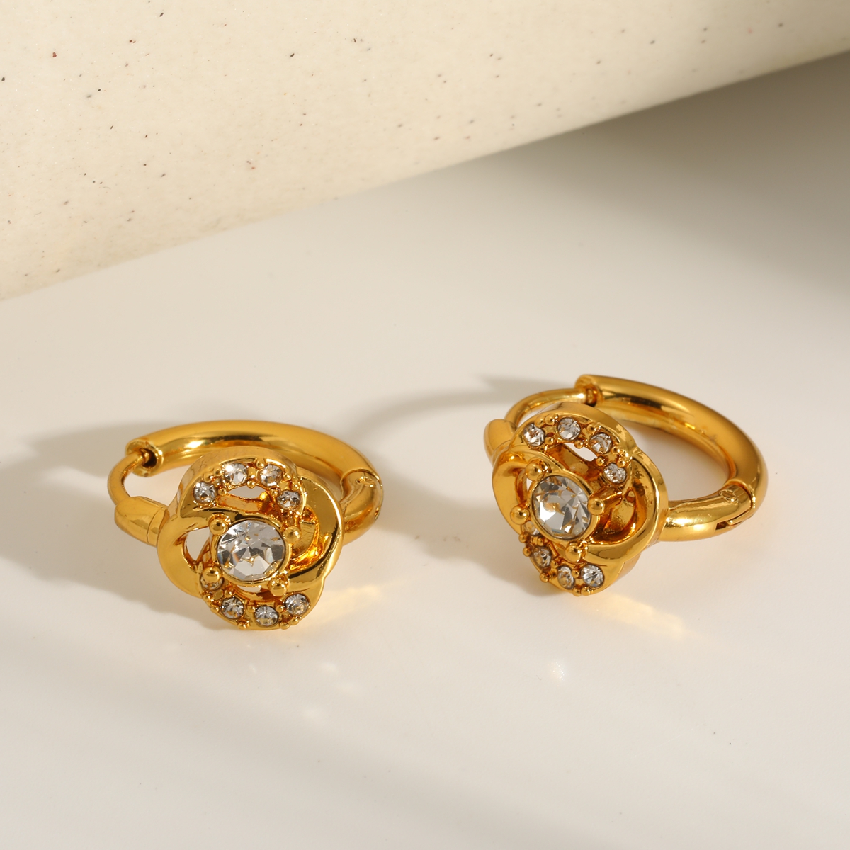 Γυναικεία Σκουλαρίκια Κρίκοι Diamond Rosette Hoops από Ανοξείδωτο Ατσάλι Επιχρυσωμένα 18Κ με Zircon