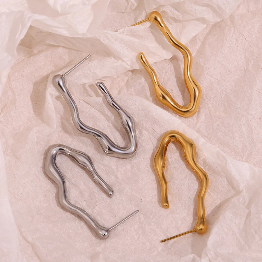 Γυναικεία σκουλαρίκια κρίκοι κυματιστοί από ανοξείδωτο ατσάλι επιχρυσωμένοι 18K σε χρυσό και ασημί.