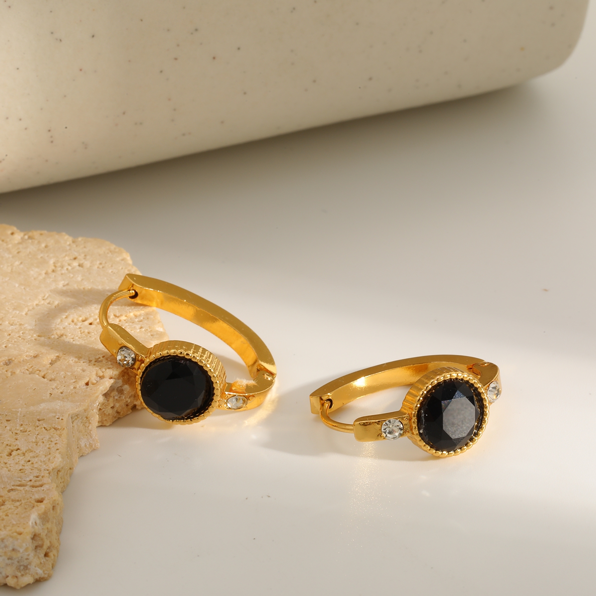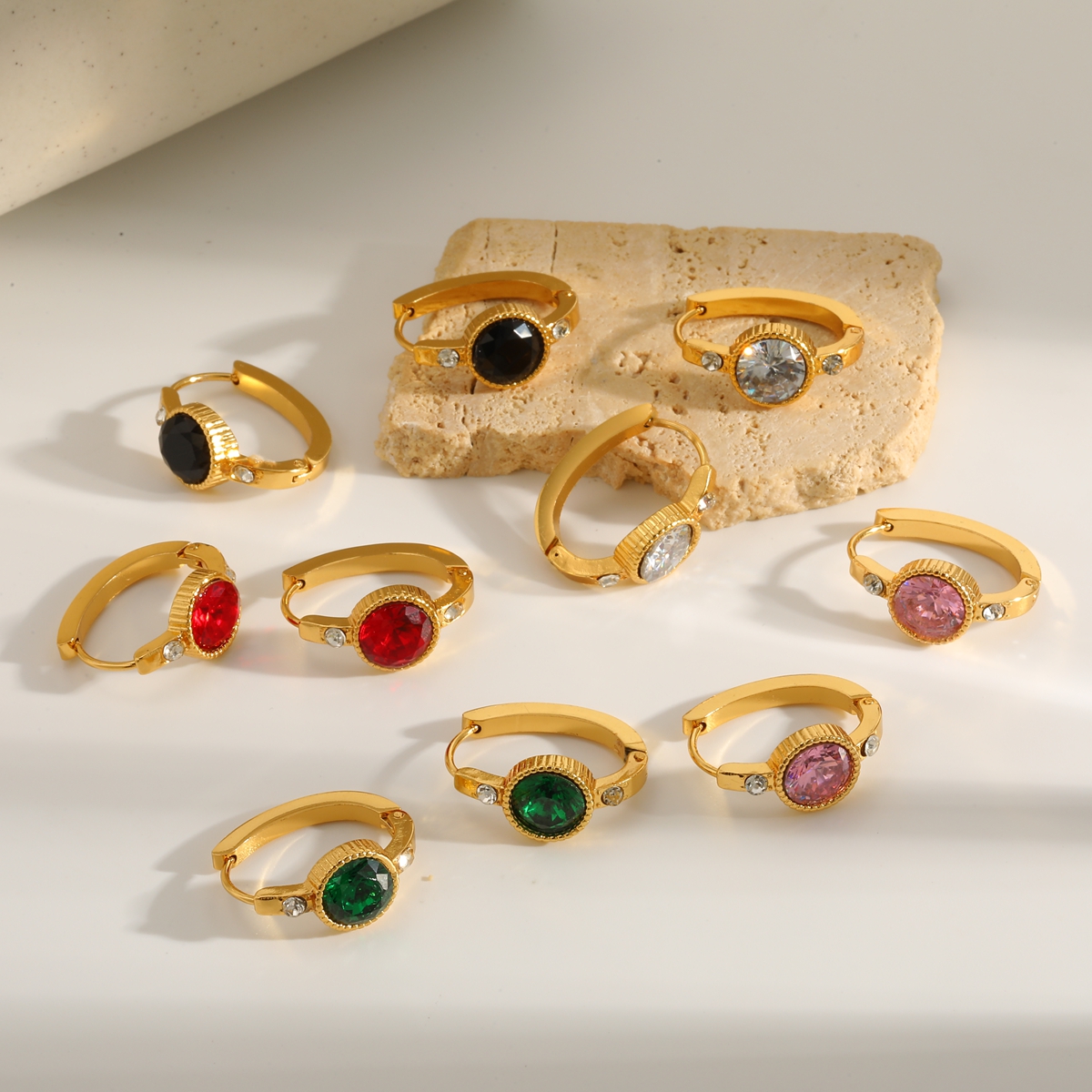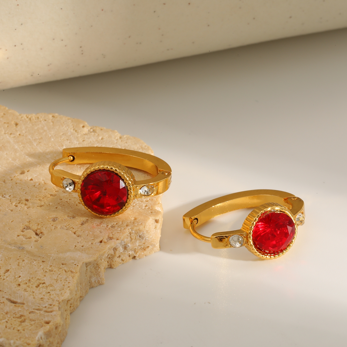 Γυναικεία σκουλαρίκια κρίκοι Vintage Gem Hoops από ανοξείδωτο ατσάλι επιχρυσωμένα 18Κ με Zircon. Vintage σκουλαρίκια κρίκοι με μαύρο και κόκκινο στρογγυλό zircon σε χρυσό πλαίσιο.