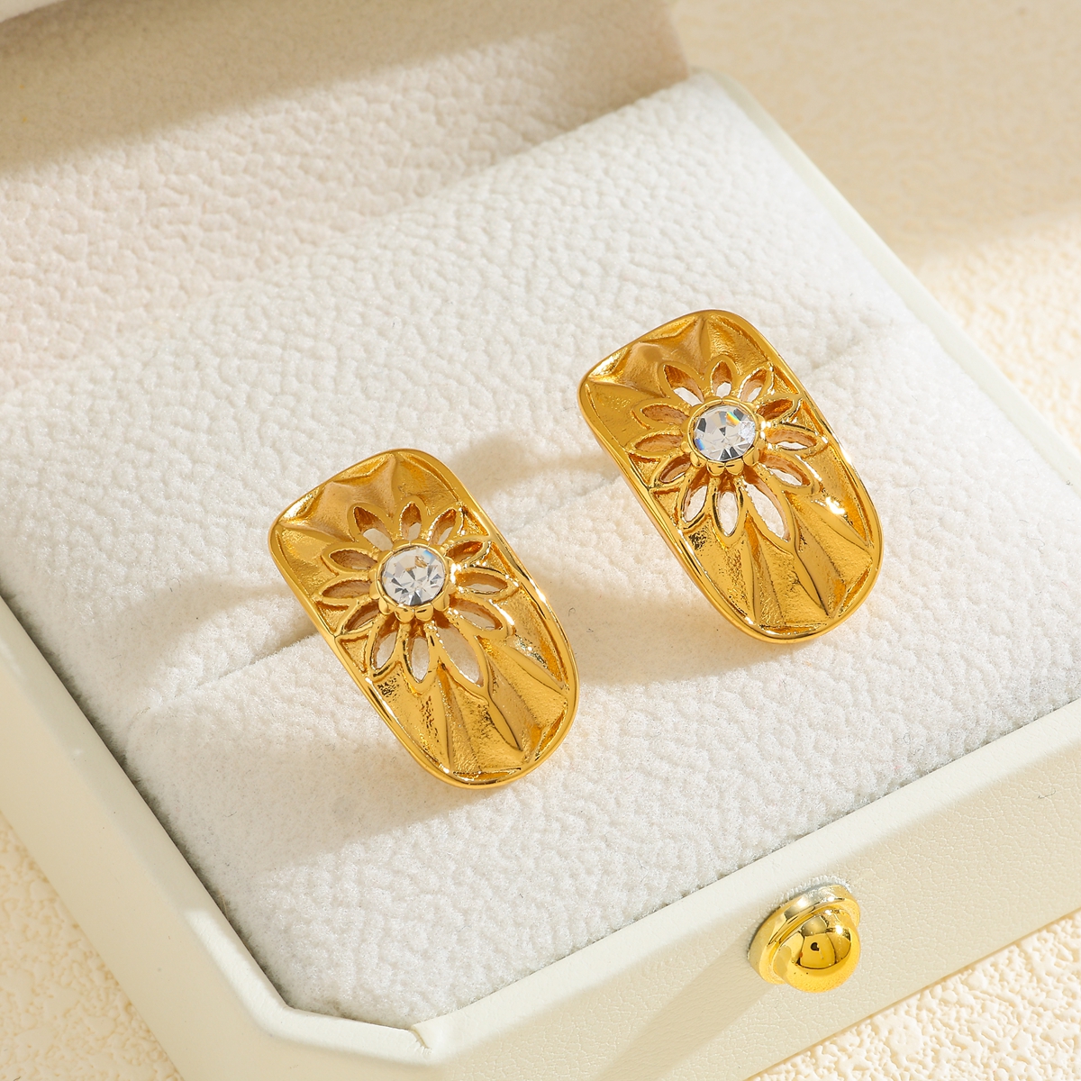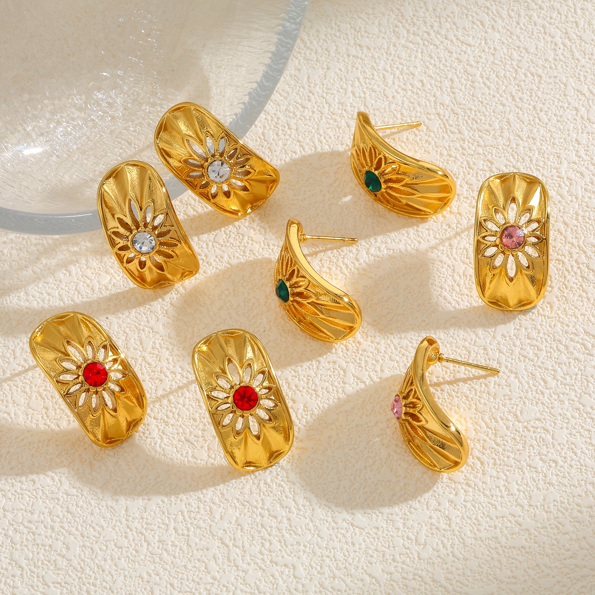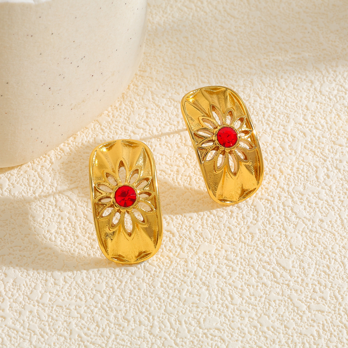 Γυναικεία σκουλαρίκια Luxe Petal Earrings από ανοξείδωτο ατσάλι επιχρυσωμένα 18Κ με zircon. Ιδιαίτερα ανάγλυφα χρυσά σκουλαρίκια με κόκκινα και λευκά zircon.