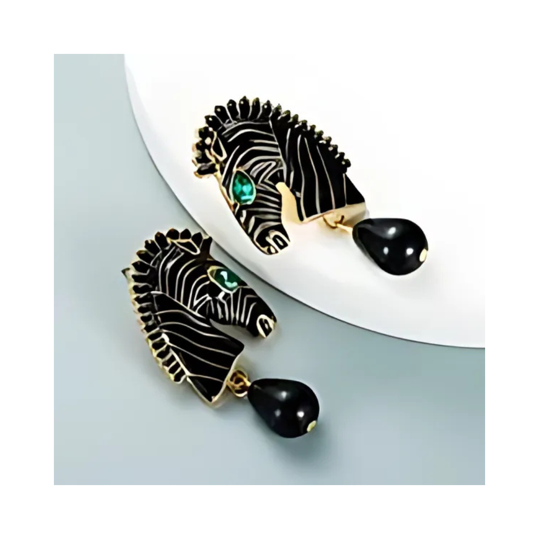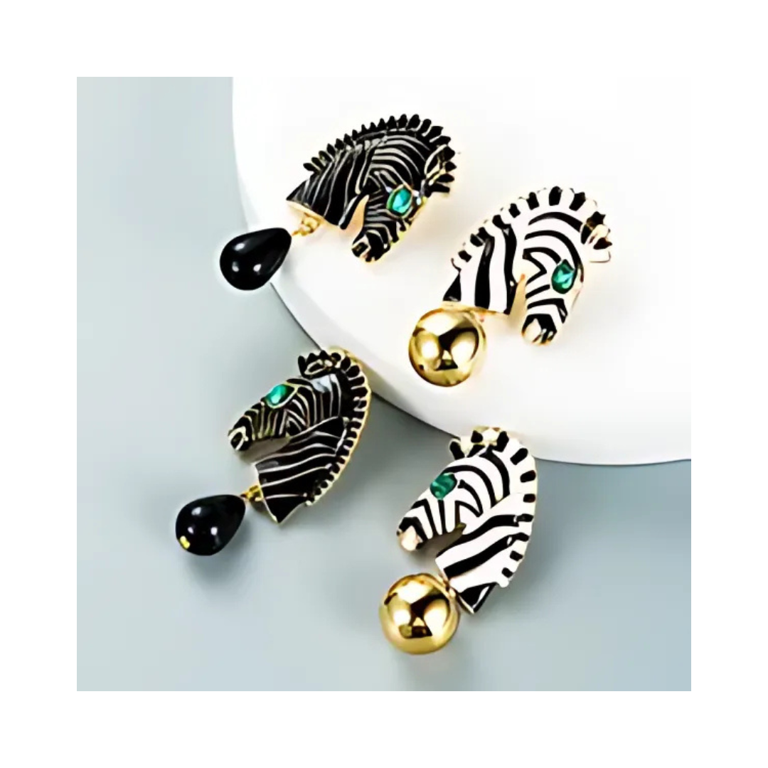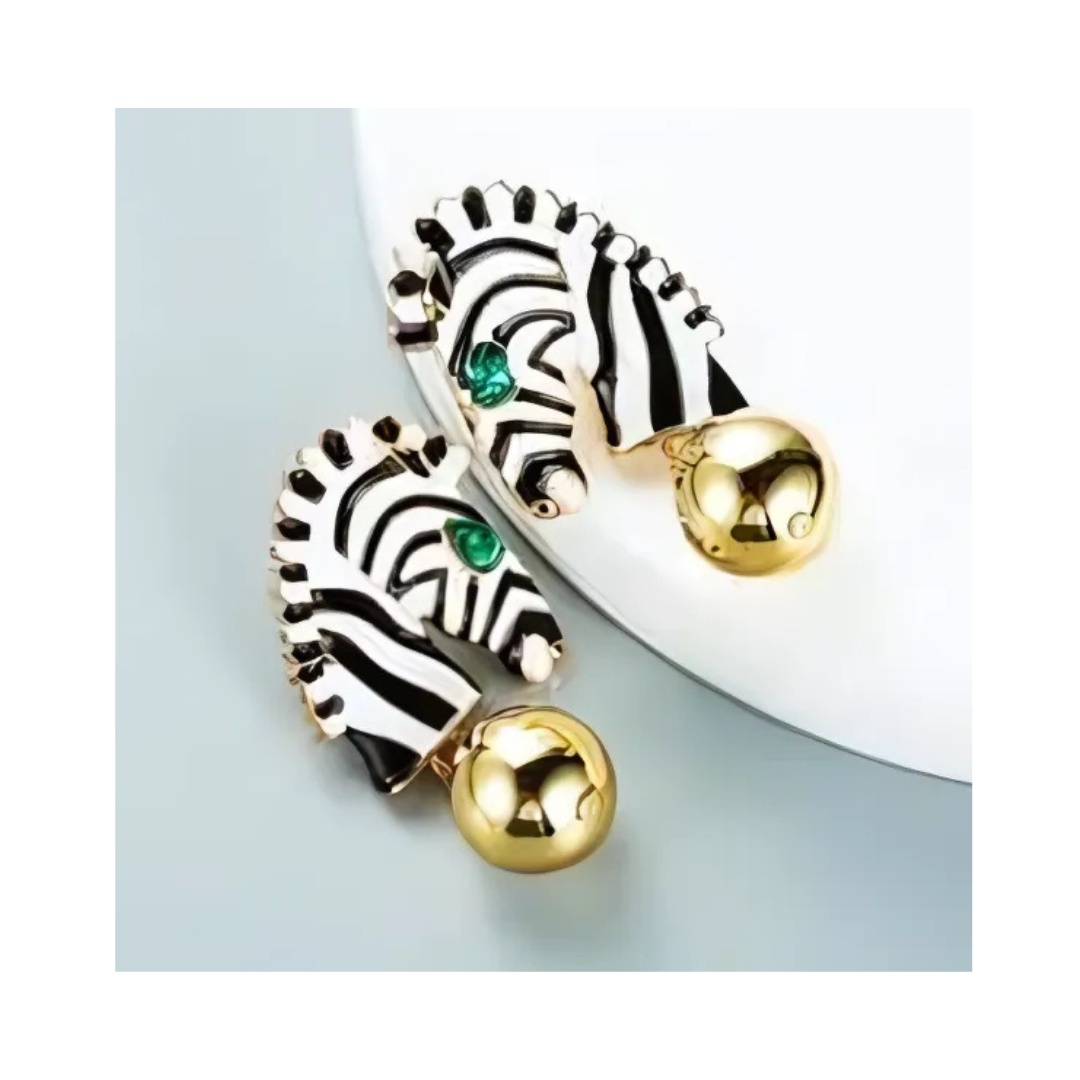 Γυναικεία ριγέ σκουλαρίκια σε σχήμα ζέβρα. Statement σκουλαρίκια από κράμα μετάλλου σε λευκό και μαύρο χρώμα.