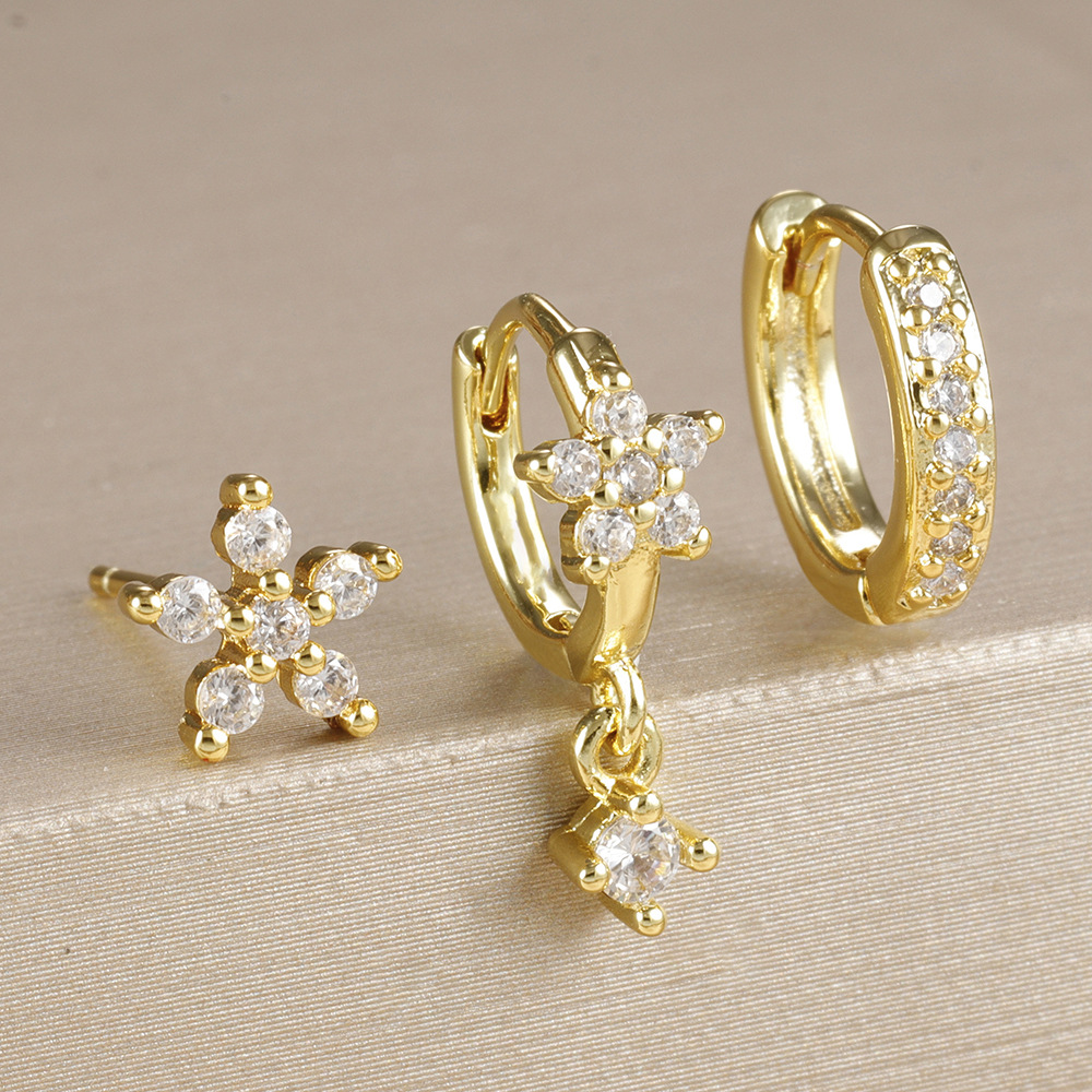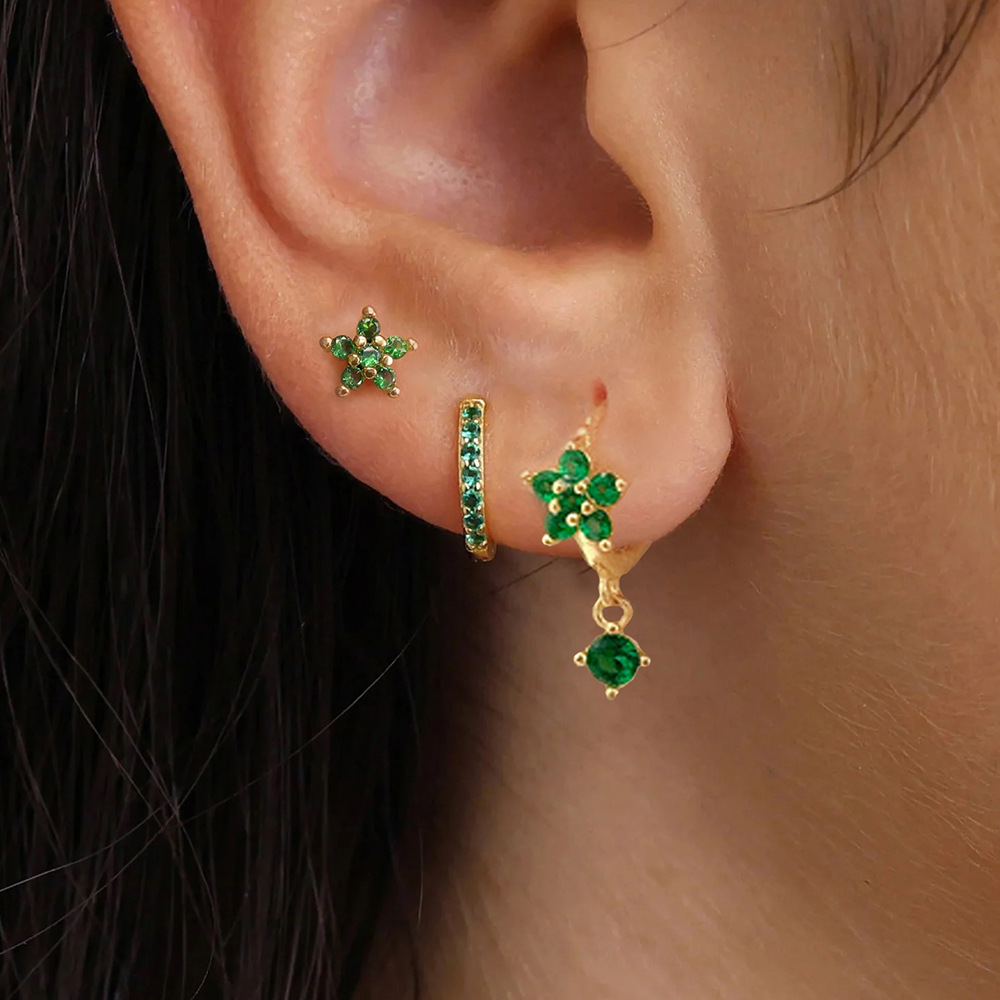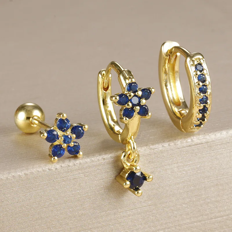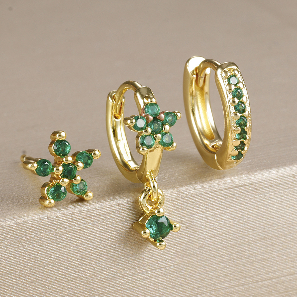 Γυναικεία σκουλαρίκια σετ 3 Flower από κράμα μετάλλου με Zircon σε πράσινο, λευκό και μπλε χρώμα.