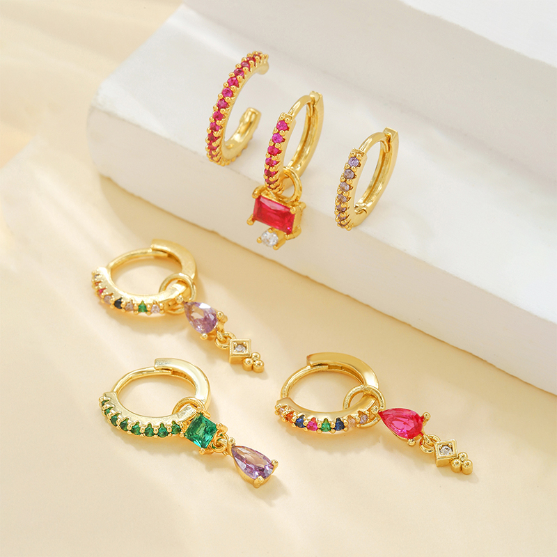 Γυναικεία Μεταλλικά Σκουλαρίκια Σετ Spectrum 6 σχέδια, Επιχρυσωμένα 18K με Zircon σε διάφορα χρώματα.