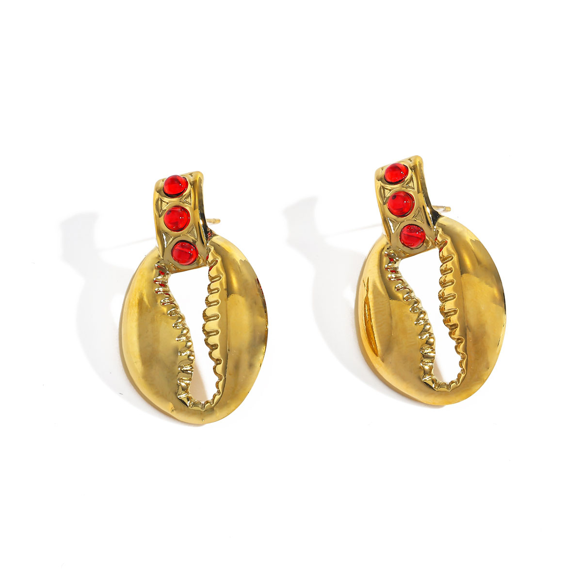 Γυναικεία σκουλαρίκια Shorefire Earrings από ανοξείδωτο ατσάλι επιχρυσωμένα 18Κ με zircon. Ιδιαίτερα σκουλαρίκια σε σχήμα κοχύλι με κόκκινα zircon.