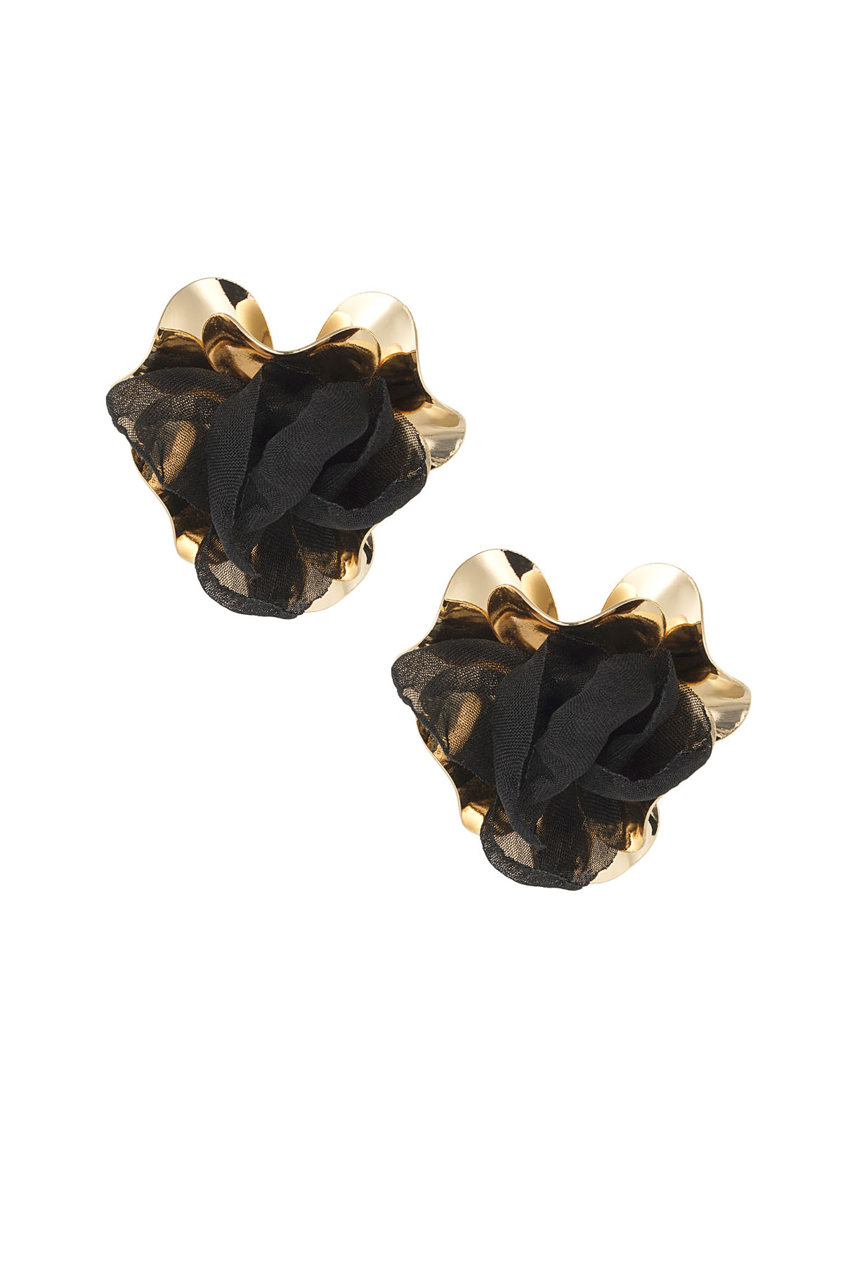 Γυναικεία μεταλλικά σκουλαρίκια Statement μαύρα. Ιδιαίτερα γυναικεία σκουλαρίκια σε χρυσό χρώμα με μαύρο τούλι.