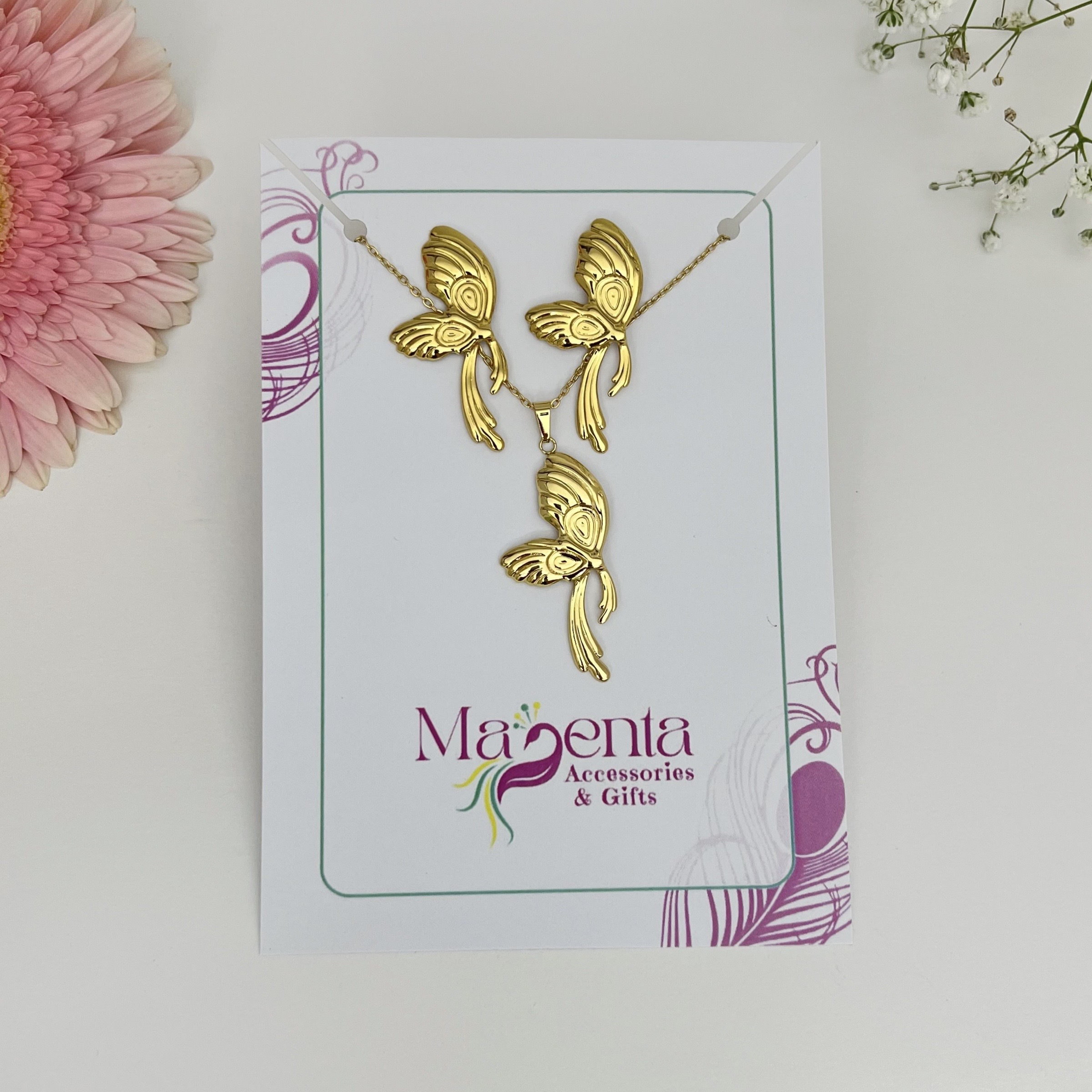 Γυναικείο Σετ Κολιέ – Σκουλαρίκια Butterfly από Ανοξείδωτο Ατσάλι Χρυσό