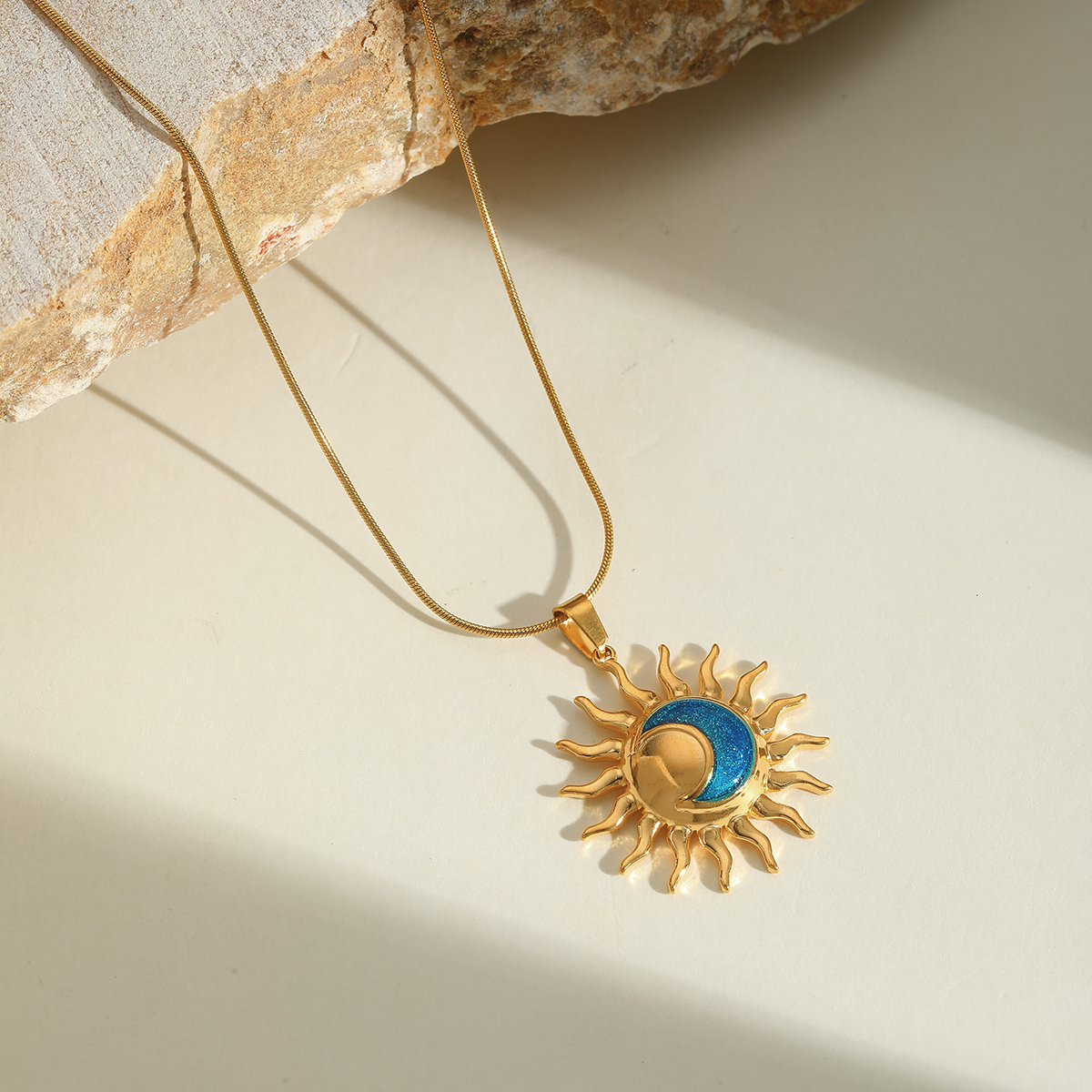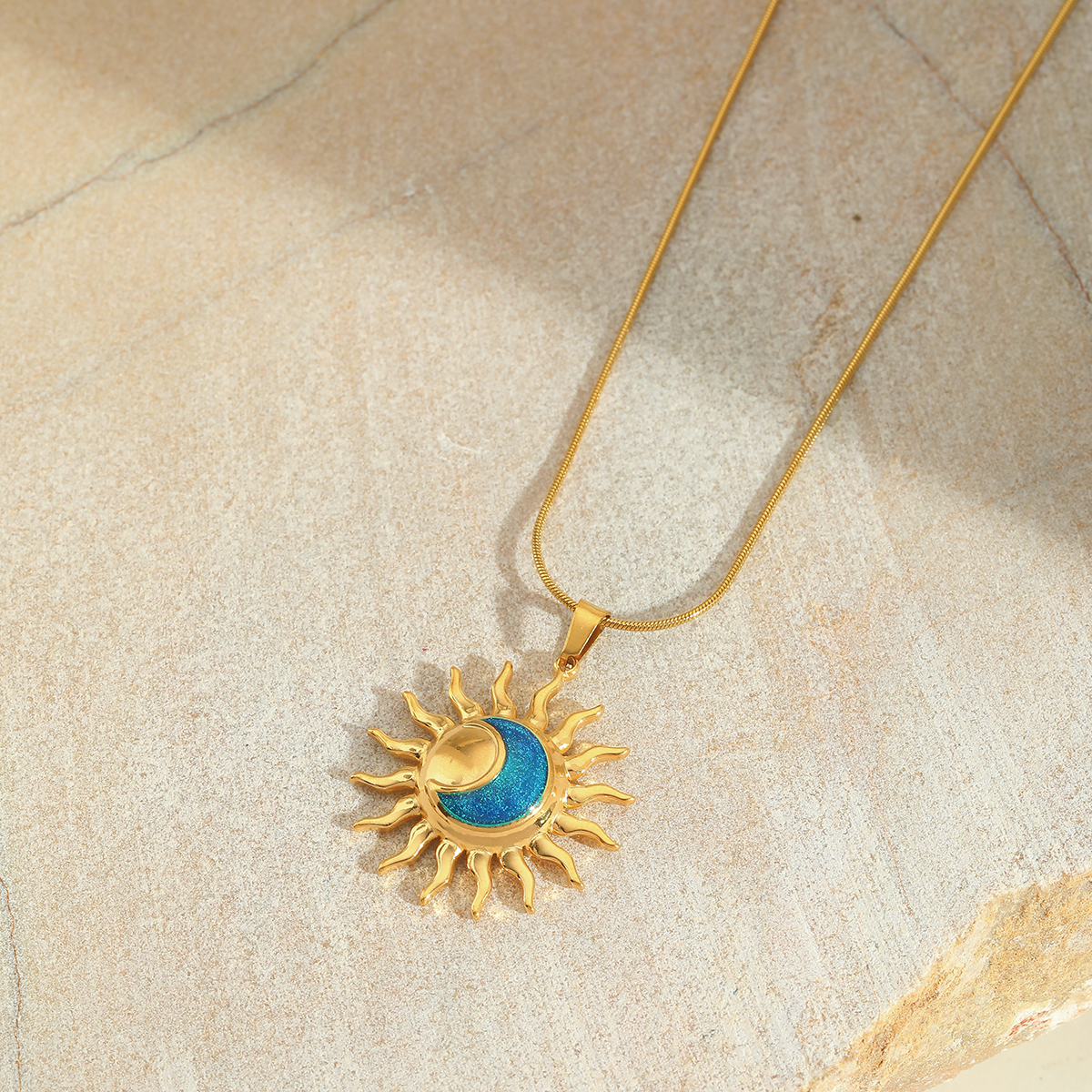 Γυναικείο κολιέ μπλε ήλιος από ανοξείδωτο ατσάλι επιχρυσωμένο 18K με επισμάλτωση σε σχήμα ήλιου.