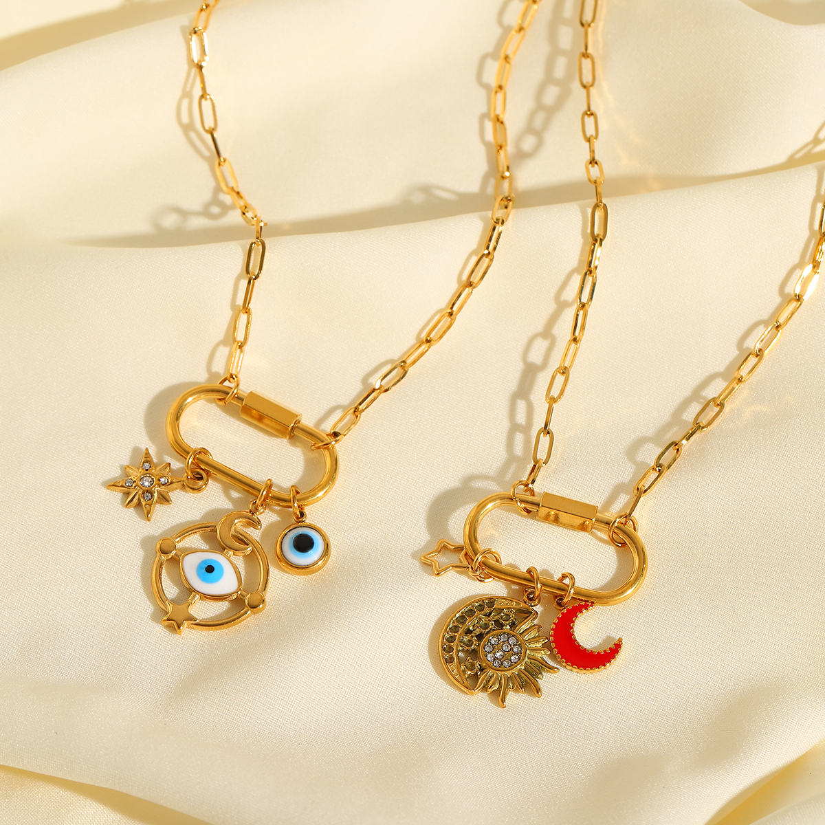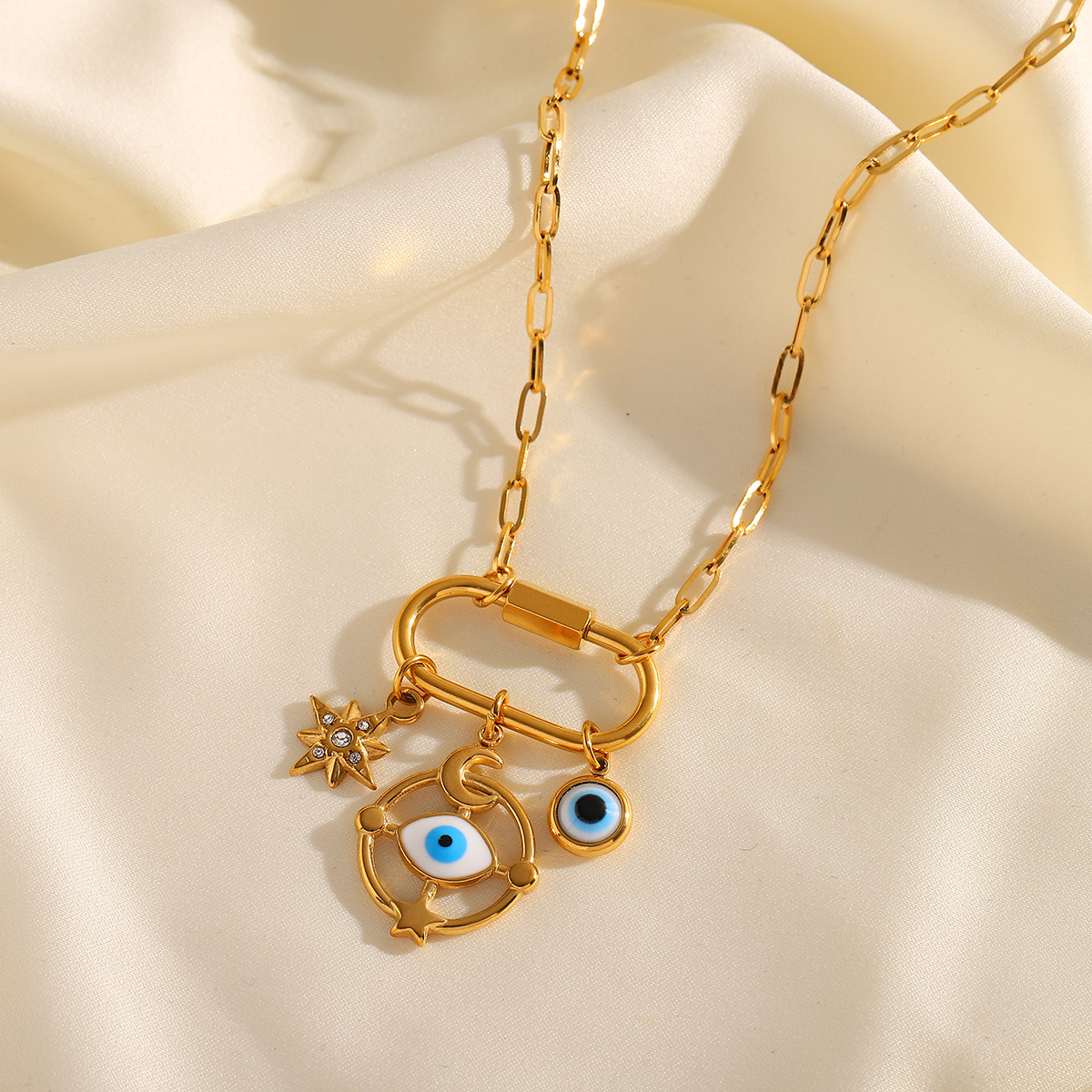 Γυναικείο κολιέ Blue Eye από ανοξείδωτο ατσάλι επιχρυσωμένο 18Κ, multi charms μπλε ματάκι και αστέρι με Zircon.