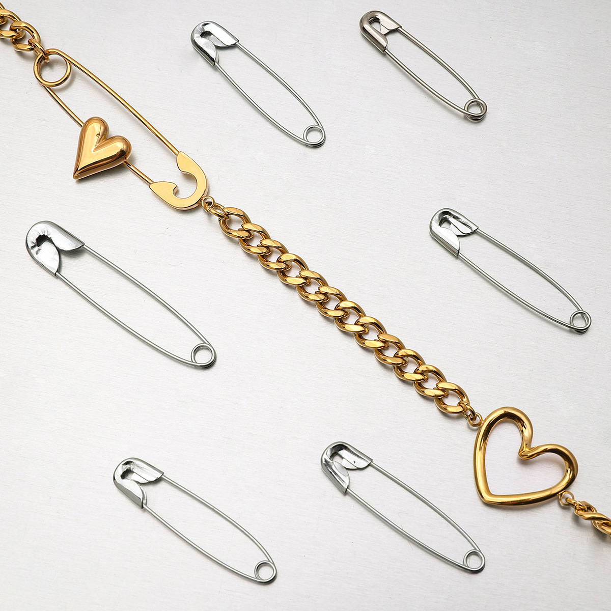 Γυναικείο κολιέ Chain & Pin Heart από Ανοξείδωτο Ατσάλι Επιχρυσωμένο με Πέρλα. Χρυσό κολιέ λεπτή αλυσίδα με παραμάνα, καρδιές και πέρλα.