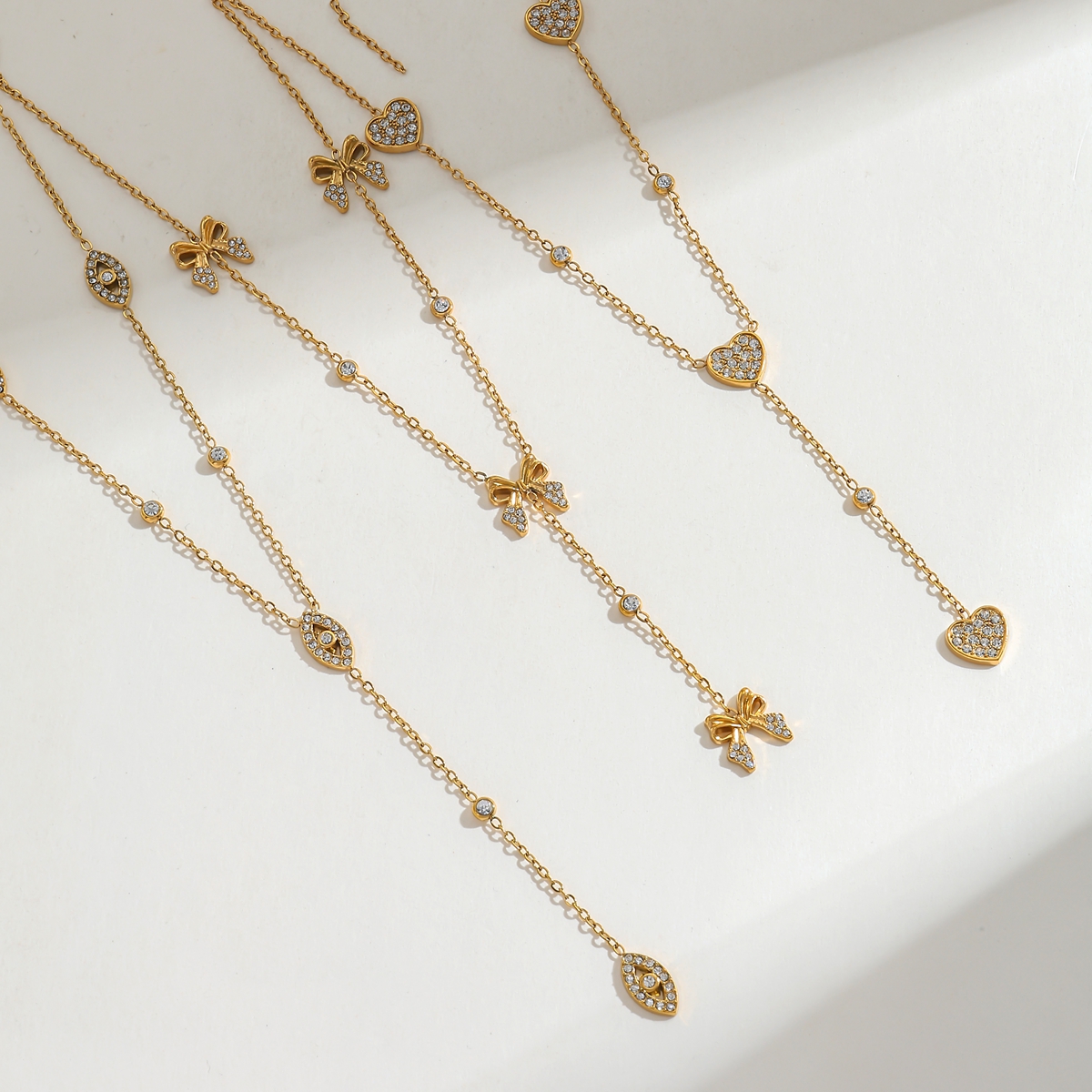Γυναικείο Κολιέ Darling Bow από Ανοξείδωτο Ατσάλι Επιχρυσωμένο 18Κ με Zircon. Ιδιαίτερο λεπτό κολιέ με φιογκάκια και zircon.