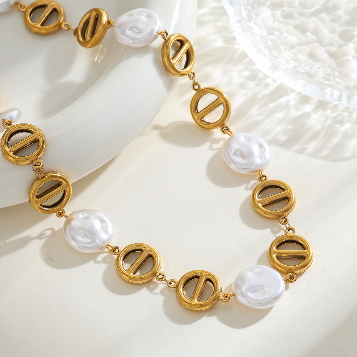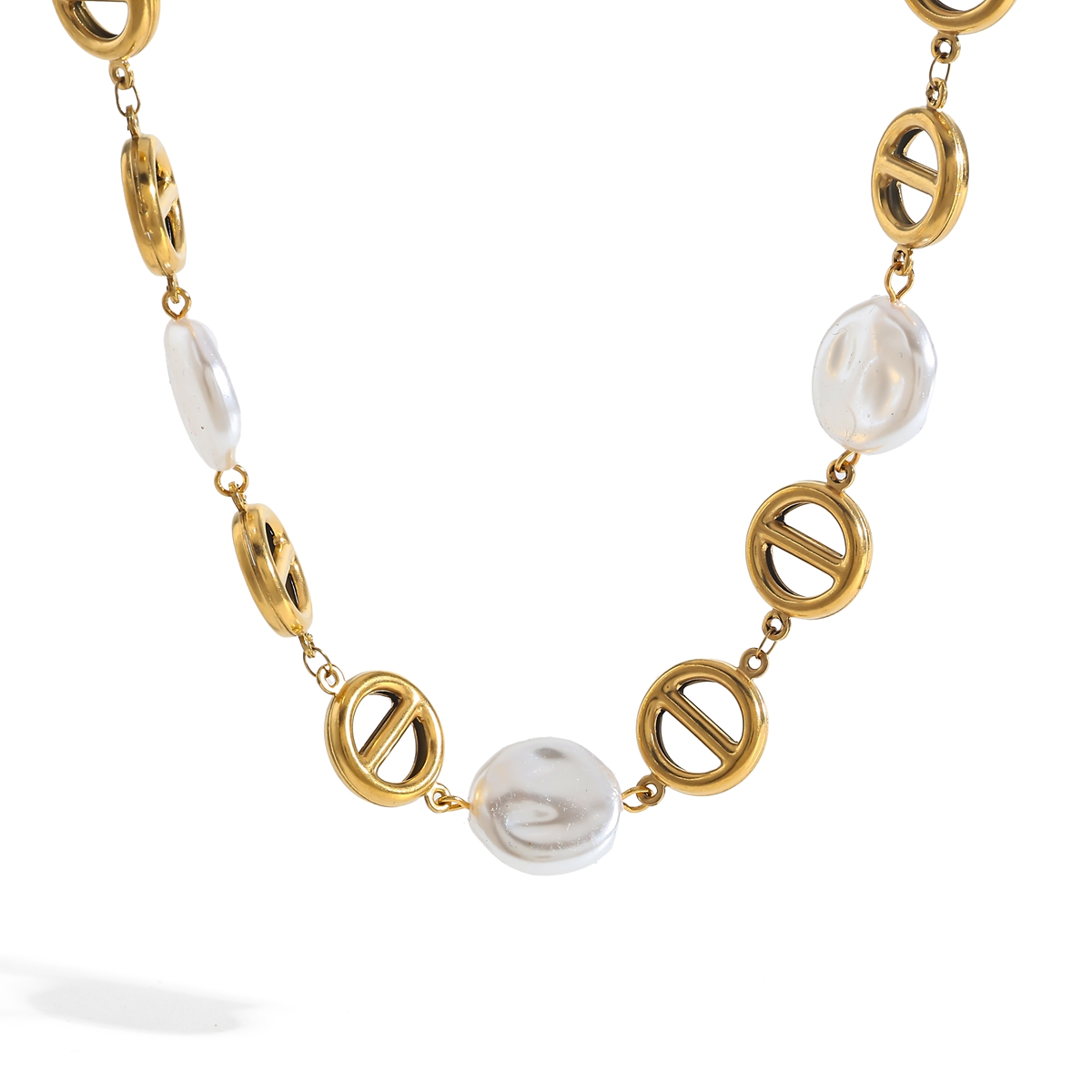 Γυναικείο κολιέ Flat Pearl-Mariner Chain από Ανοξείδωτο Ατσάλι με Πέρλες. Ιδιαίτερο κολιέ με ναυτική αλυσίδα και πέρλες.