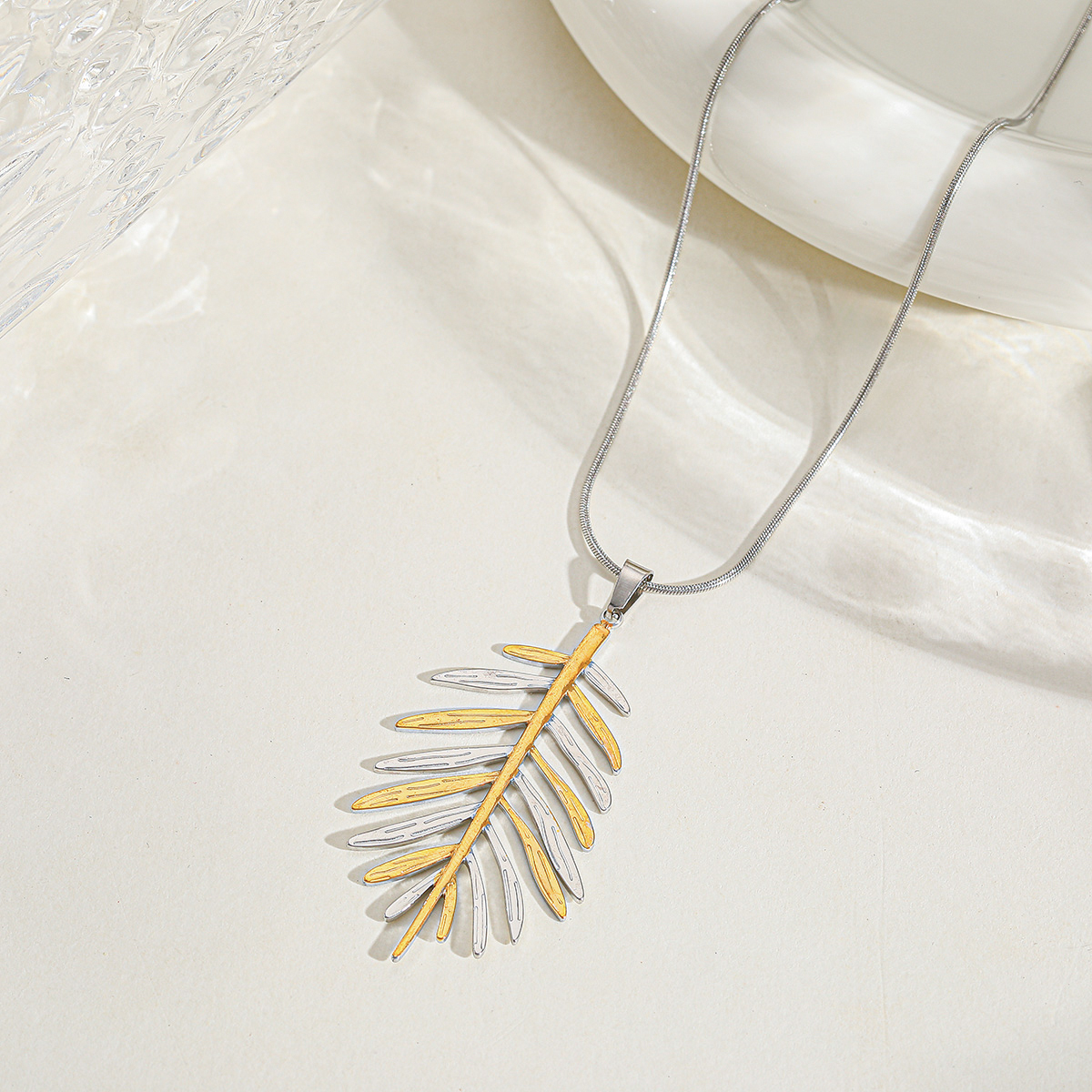 Γυναικείο κολιέ silver gold leaf από ανοξείδωτο ατσάλι επιχρυσωμένο 18K. Γυναικείο κολιέ φύλλο σε ασημί και χρυσό με λεπτή αλυσίδα.