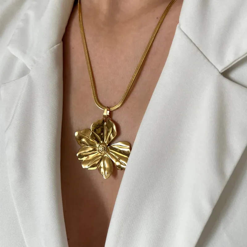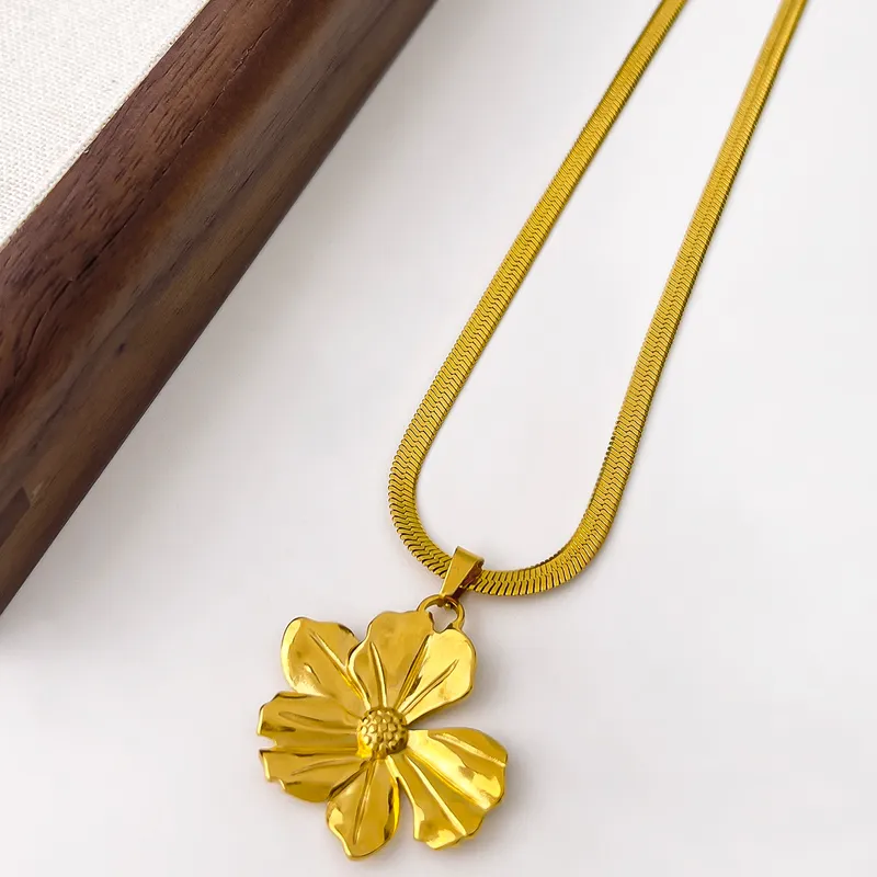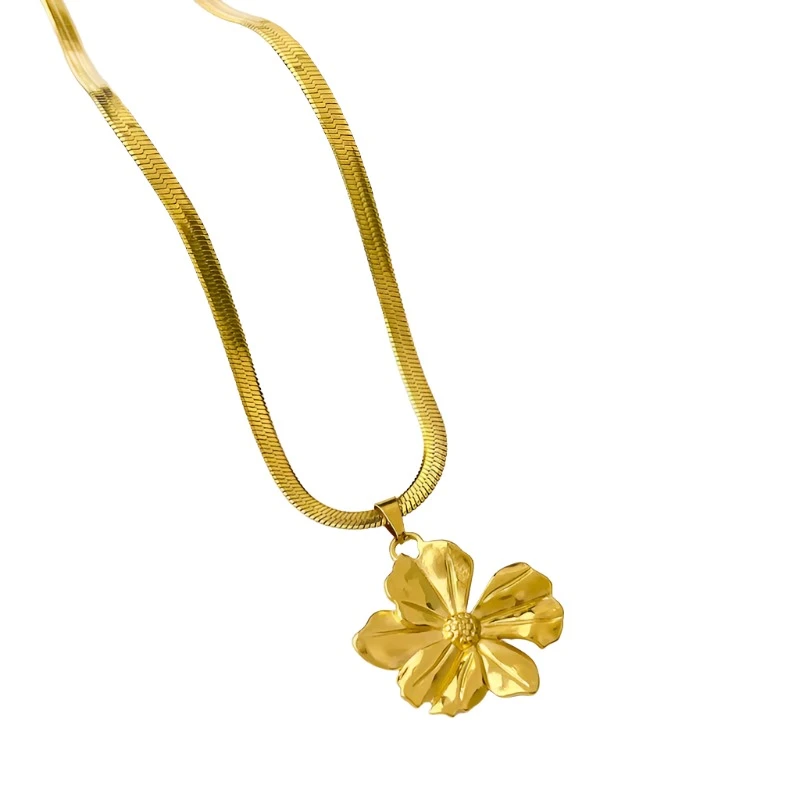 Γυναικείο κολιέ σε σχήμα λουλούδι από ανοξείδωτο ατσάλι επιχρυσωμένο 18K.