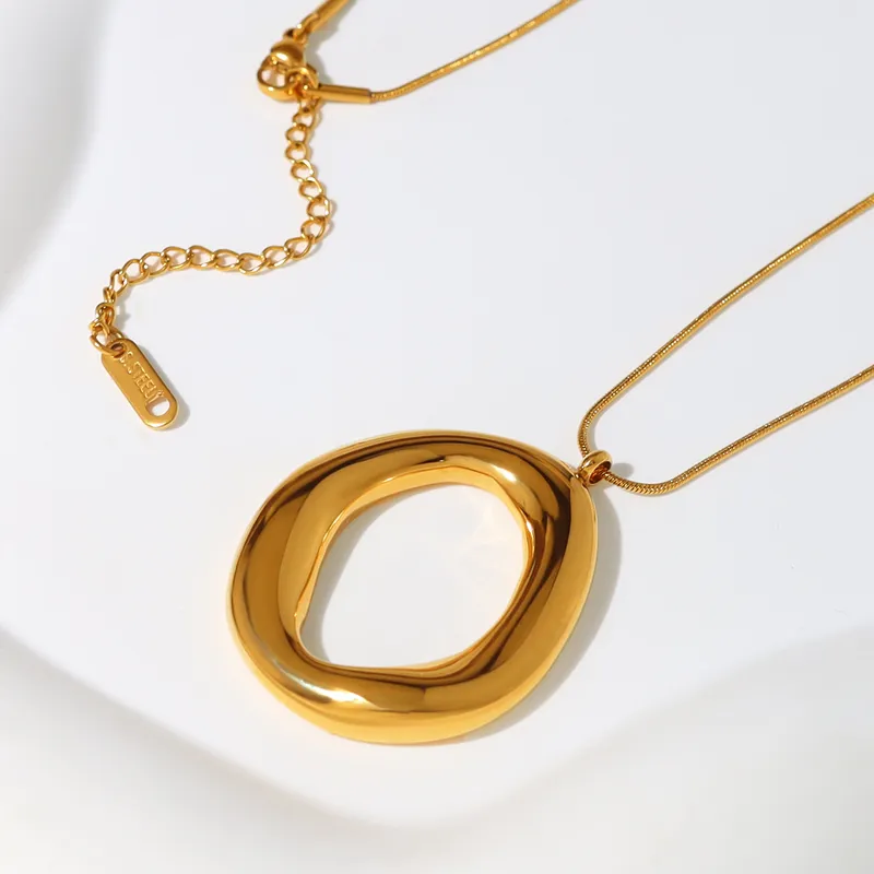 Γυναικείο κολιέ Ο σε σχήμα όμικρον από ανοξείδωτο ατσάλι επιχρυσωμένο 18K.