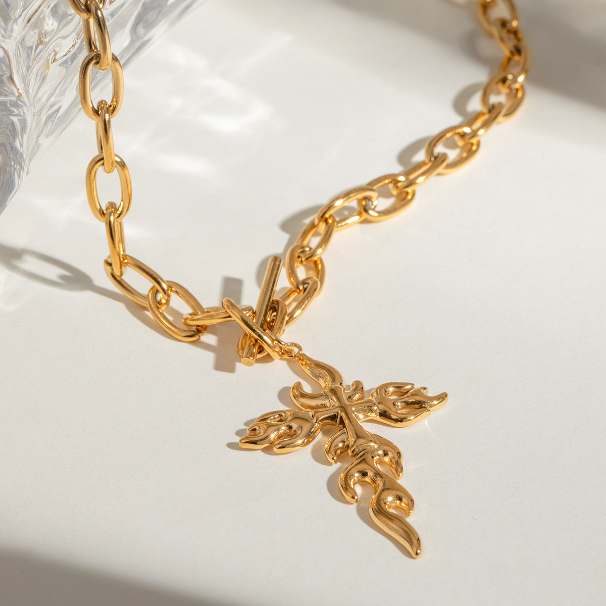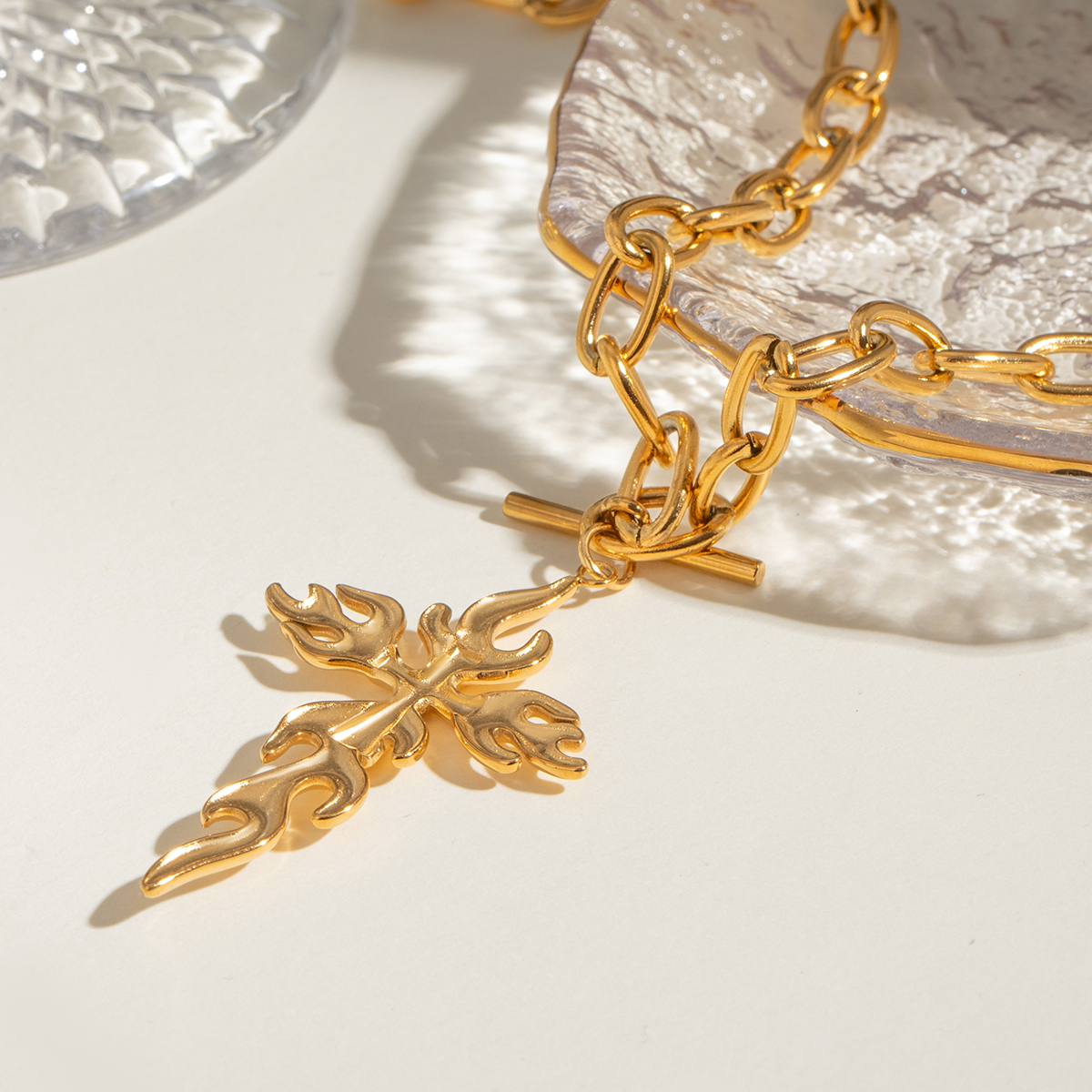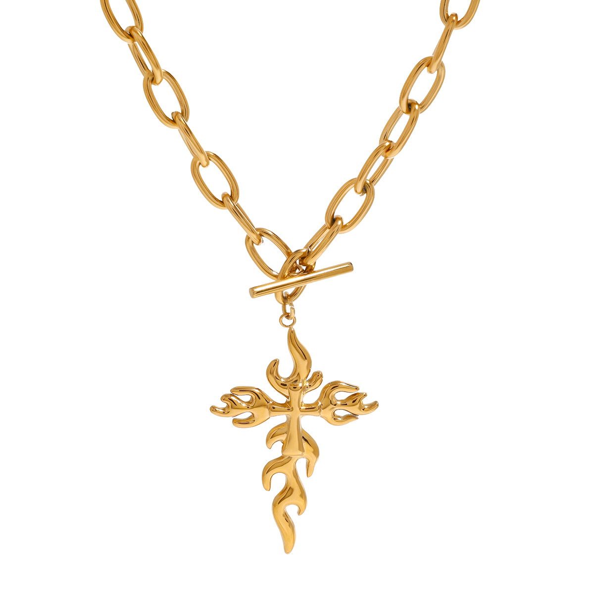 Γυναικείο κολιέ σταυρός flame από ανοξείδωτο ατσάλι. Γυναικείο κολιέ αλυσίδα αδιάβροχο και υποαλλεργικο.