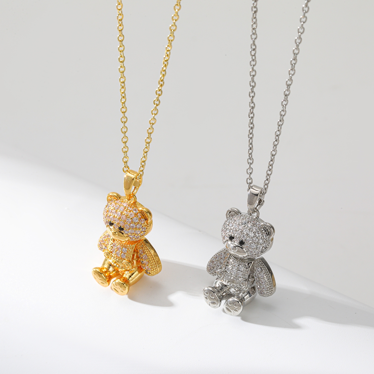 Γυναικείο κολιέ Teddy Bear από Ανοξείδωτο Ατσάλι επιχρυσωμένο 18Κ με Zircon. Κολιέ αρκουδάκι σε ασημί και χρυσό με zircon.