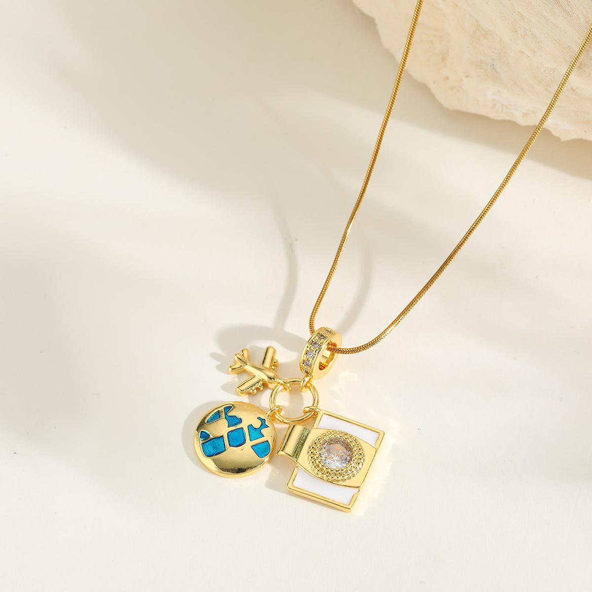 Γυναικείο κολιέ Travel με Zircon από Ανοξείδωτο Ατσάλι Επιχρυσωμένο 18K.