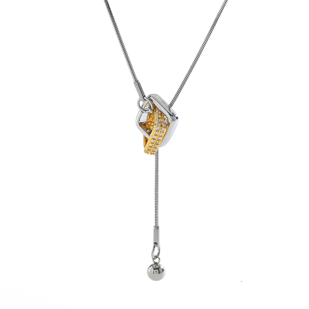 Γυναικείο κολιέ Ασημί-Χρυσό Square από Ανοξείδωτο Ατσάλι με Μπίλια και Zircon. Μακρύ προσαρμόσιμο κολιέ με snake chain αλυσίδα και τετράγωνα σε ασημί και χρυσή απόχρωση.