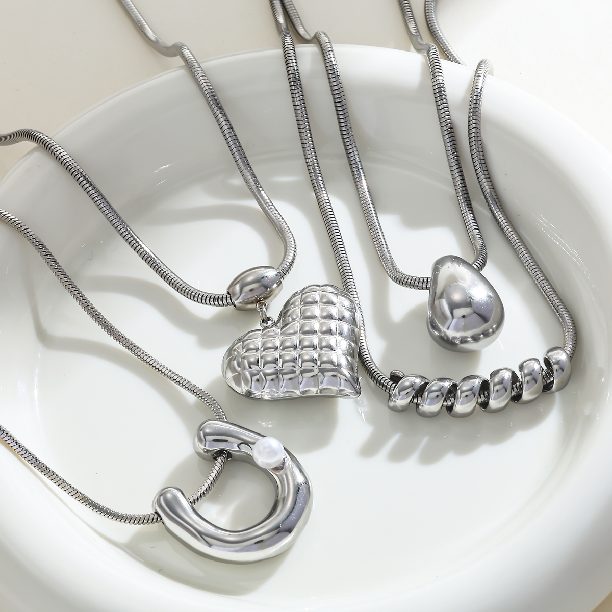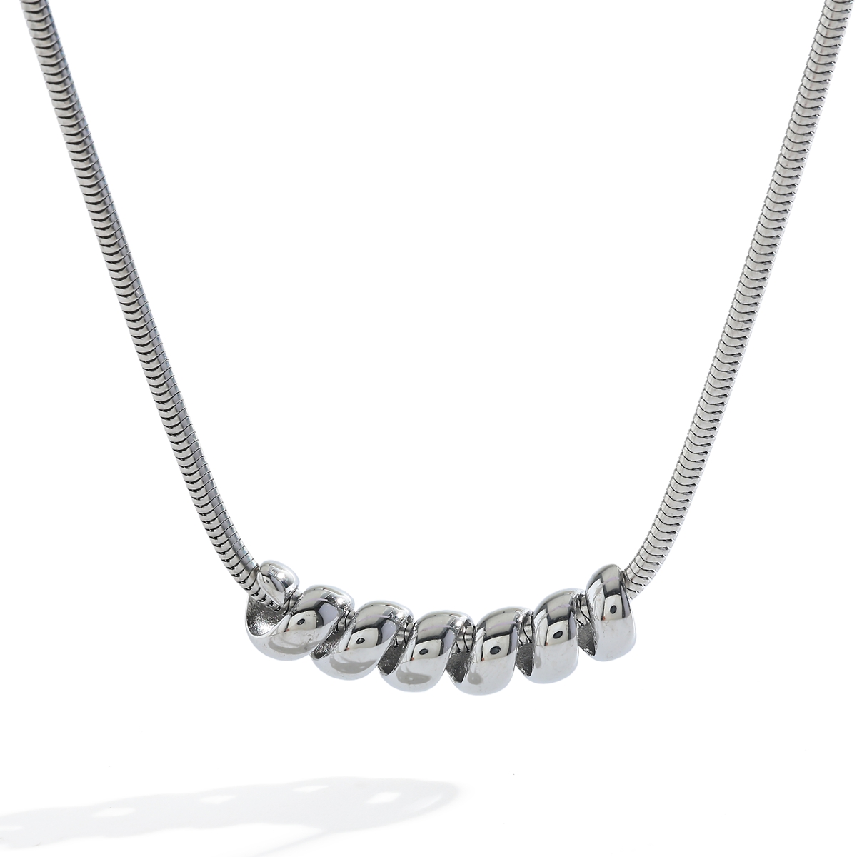 Γυναικείο κολιέ Ασημί Σπιράλ από Ανοξείδωτο Ατσάλι με Πέρλα. Μακρύ κολιέ με snake chain αλυσίδα και διακοσμητικό σπιράλ σε ασημί απόχρωση.