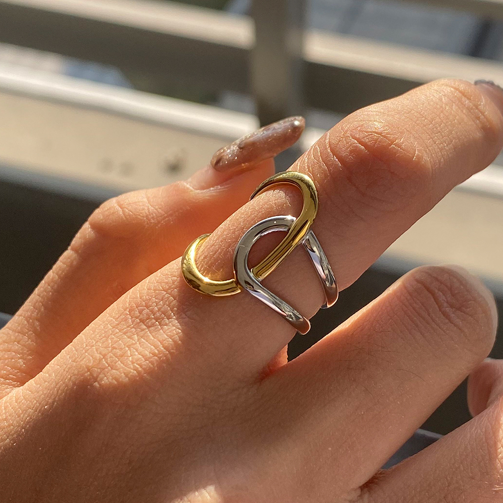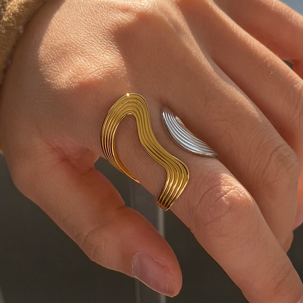 Γυναικεία δαχτυλίδια Mixed Metal Geometric από ανοξείδωτο ατσάλι χρυσό – ασημί σε γεωμετρικά σχέδια, ανοιχτού τύπου.