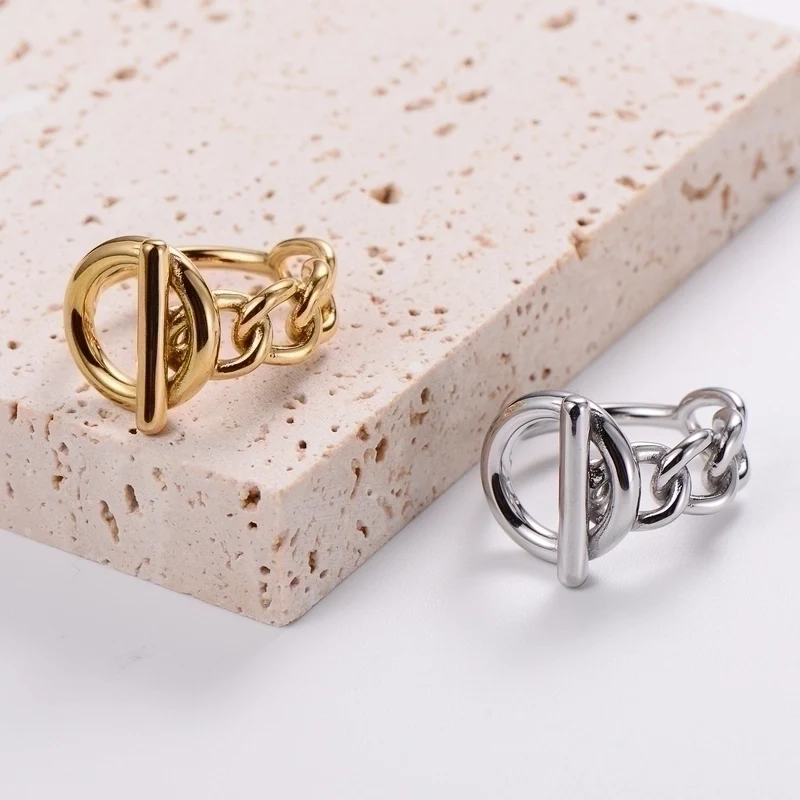 Γυναικείο δαχτυλίδι αλυσίδα από ανοξείδωτο ατσάλι επιχρυσωμένο 18K σε χρυσό και ασημί χρώμα.