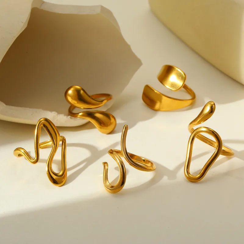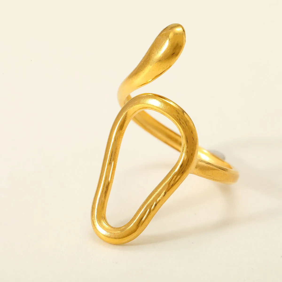 Γυναικείο δαχτυλίδι Art Form από ανοξείδωτο ατσάλι επιχρυσωμένο 18Κ, με ρευστό αφηρημένο σχέδιο, προσαρμόσιμο .
