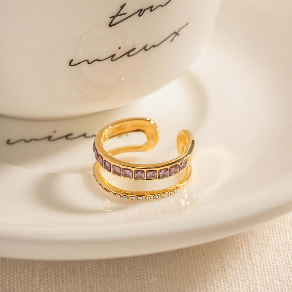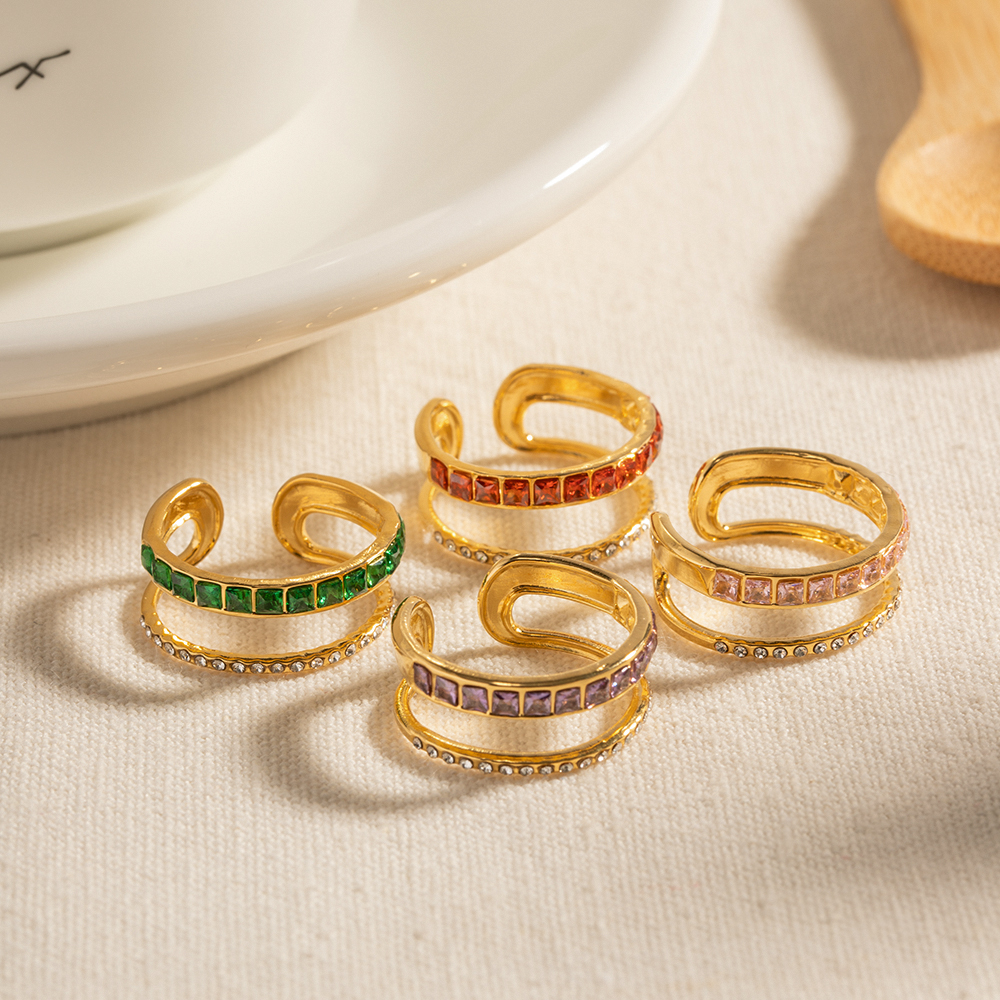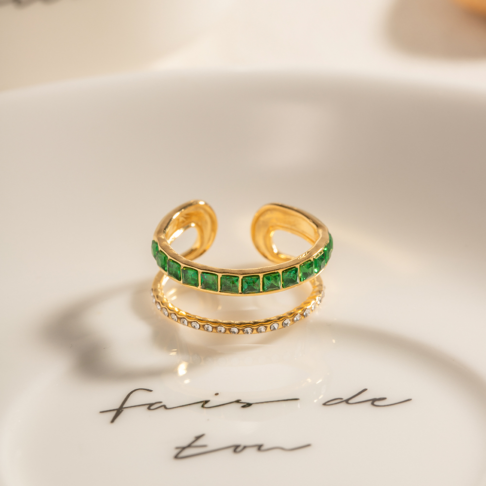 Γυναικείο δαχτυλίδι διπλό επιχρυσωμένο 18Κ από ανοξείδωτο ατσάλι με Zircon σε πράσινο και ροζ χρώμα ανοιχτού τύπου, προσαρμόσιμο.