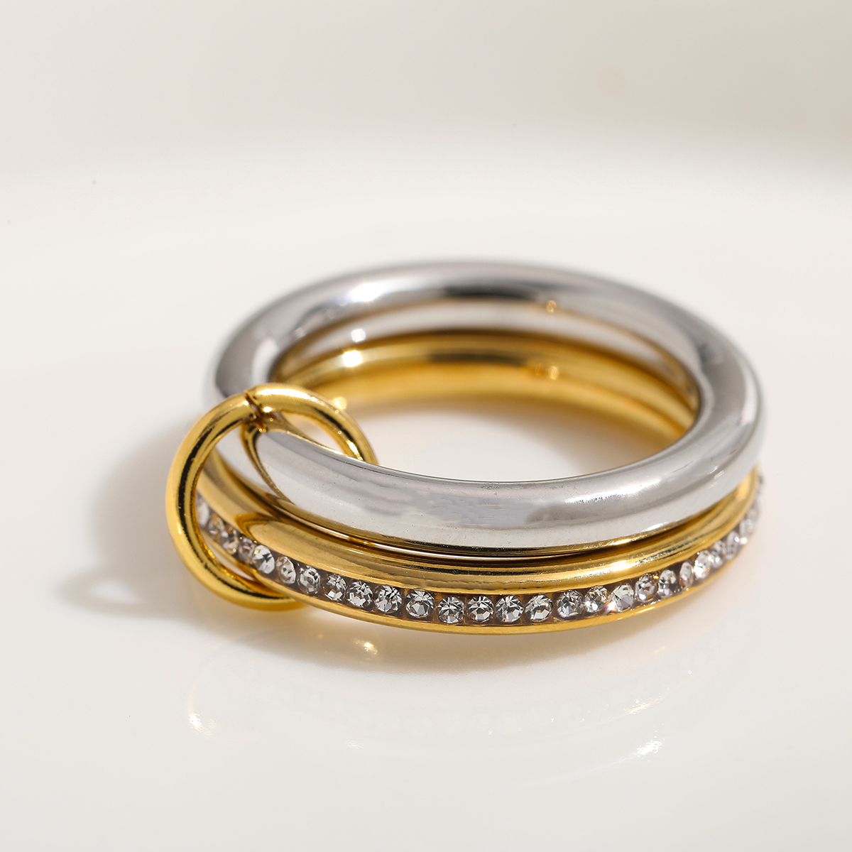 Γυναικείο δαχτυλίδι Double Stack από ανοξείδωτο ατσάλι επιχρυσωμένο 18K με Zircon. Δαχτυλίδι με δυο σειρές κρίκους και ζιρκόνιά σε χρυσό και ασημί.