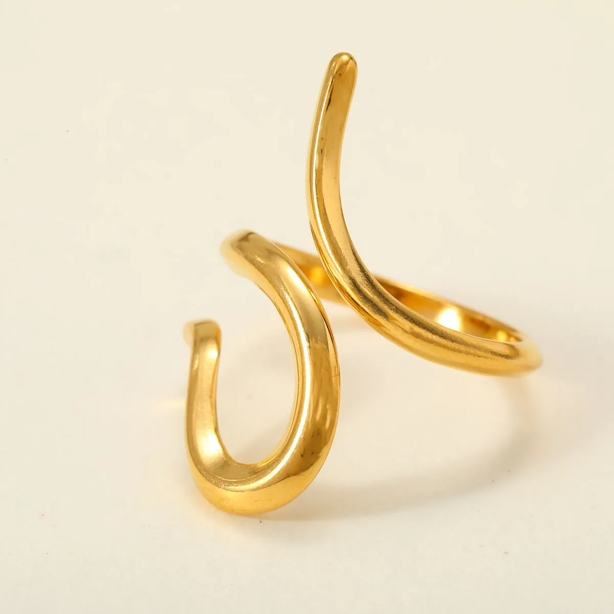 Γυναικείο δαχτυλίδι Liquid Curve από ανοξείδωτο ατσάλι επιχρυσωμένο 18Κ, με ρευστό αφηρημένο σχέδιο, προσαρμόσιμο .