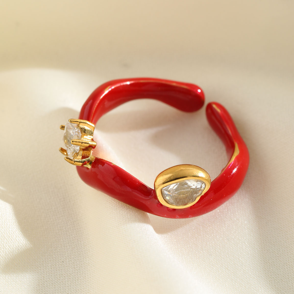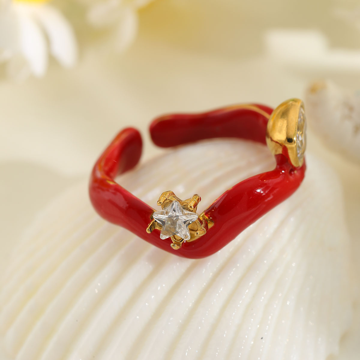 Γυναικείο δαχτυλίδι Red Heart από ανοξείδωτο ατσάλι επιχρυσωμένο 18K με Zircon. Δαχτυλίδι ανοιχτού τύπου καρδία και αστέρι με κόκκινη επισμάλτωση.