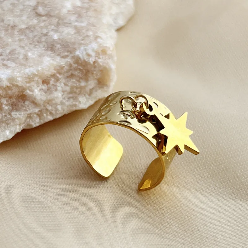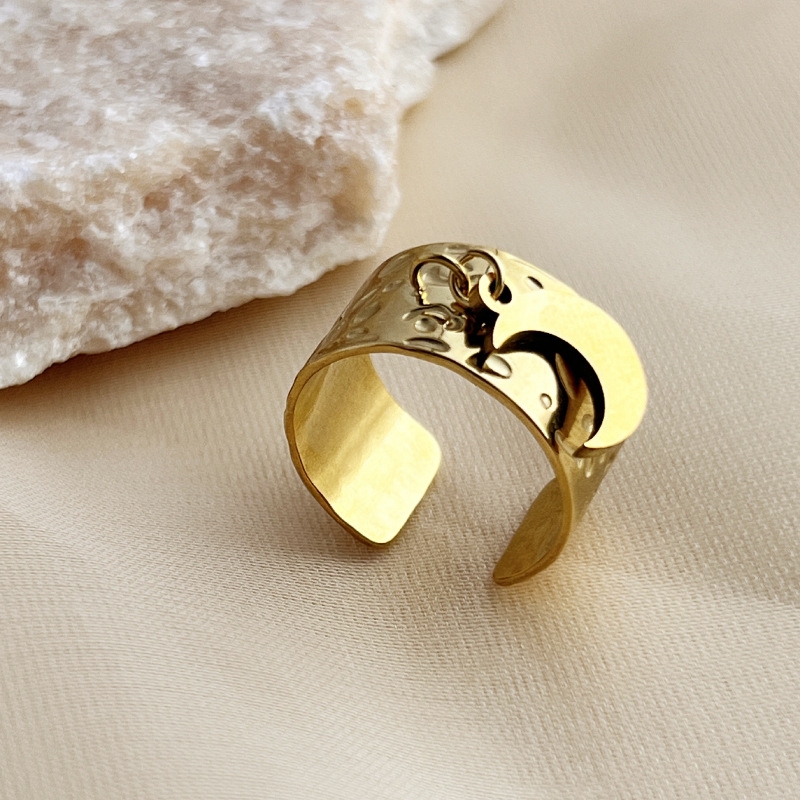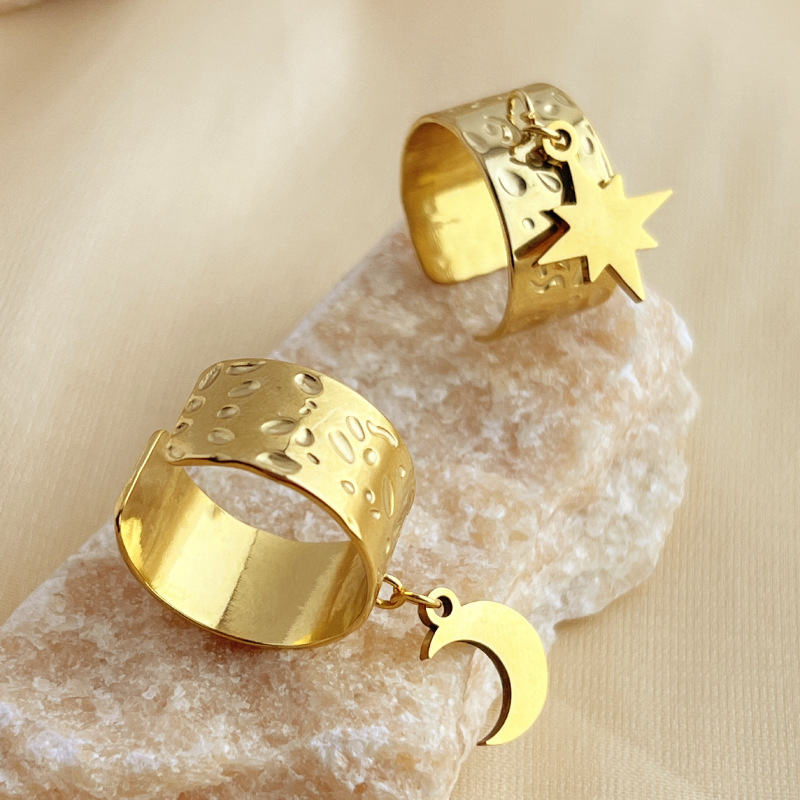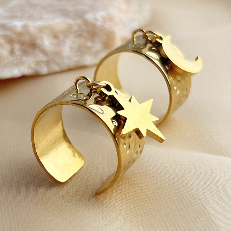 Γυναικείο δαχτυλίδι star & moon από ανοξείδωτο ατσάλι ανοιχτού τύπου με διακοσμητικό αστέρι και μισοφέγγαρο.