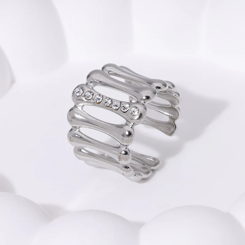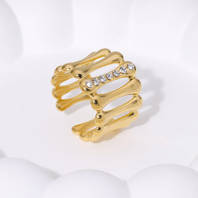 Γυναικείο προσαρμόσιμο δαχτυλίδι stripe με στρας από ανοξείδωτο ατσάλι με παράλληλες γραμμές. Γυναικείο δαχτυλίδι ανοιχτού τύπου σε χρυσό και ασημί.