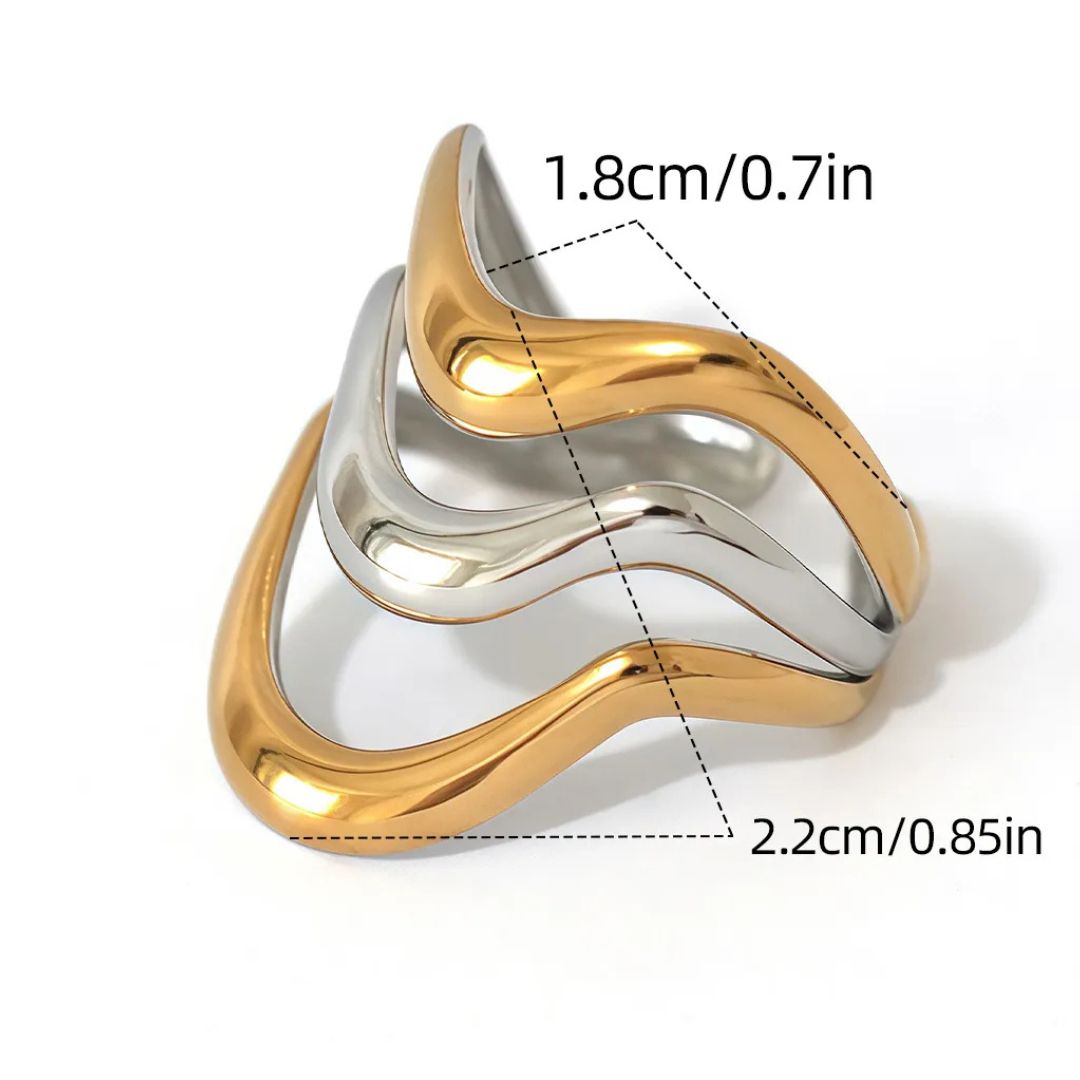 Γυναικείο δαχτυλίδι Wave Flow από ανοξείδωτο ατσάλι επιχρυσωμένο 18Κ, με ρευστό αφηρημένο σχέδιο mixed metal σε χρυσό-ασημί, προσαρμόσιμο .